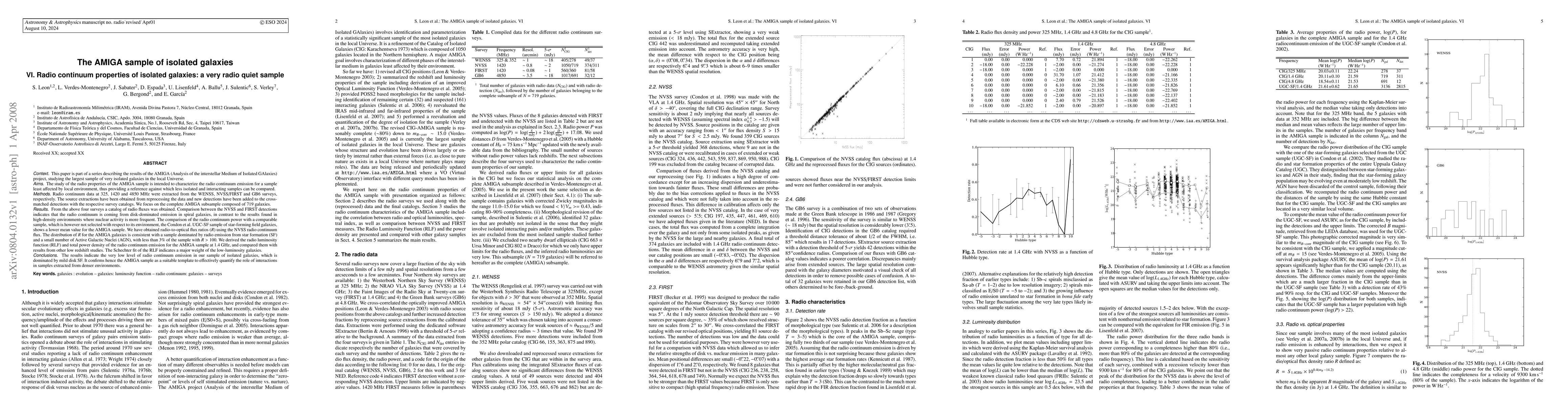 A study of 719 isolated galaxies found low radio continuum emission dominated by mild disk star formation, confirming the AMIGA sample as a template to quantify interactions in denser environments.