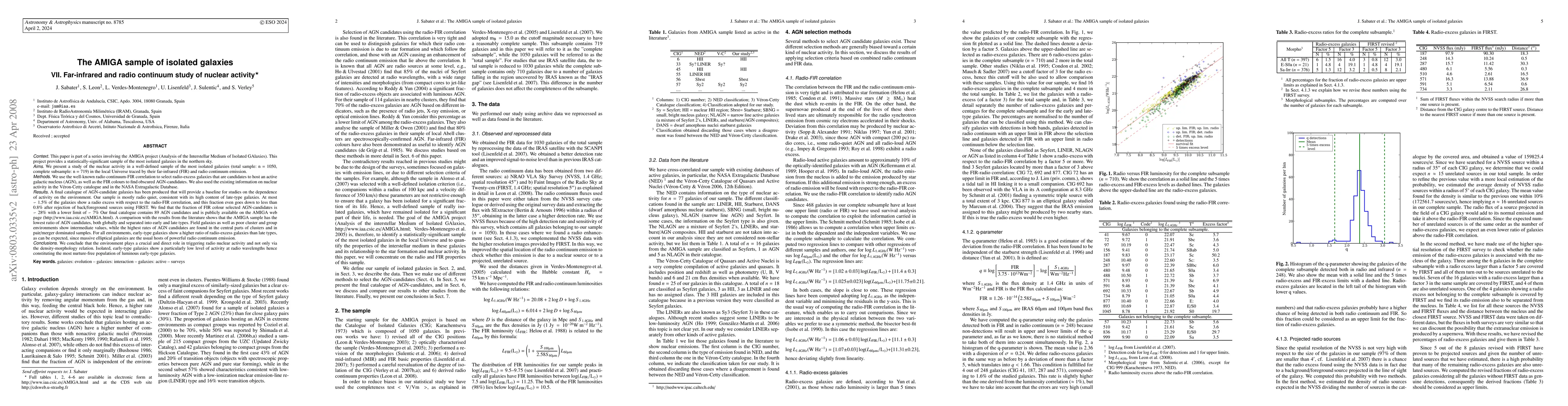 This study investigates nuclear activity in isolated galaxies using far-infrared and radio continuum data, identifying AGN candidates through radio-FIR correlations and FIR colors. The research finds that only ~1.5% of galaxies exhibit radio-excess, with isolated early-type galaxies showing the lowest activity levels, indicating that environmental factors significantly influence radio nuclear activity.