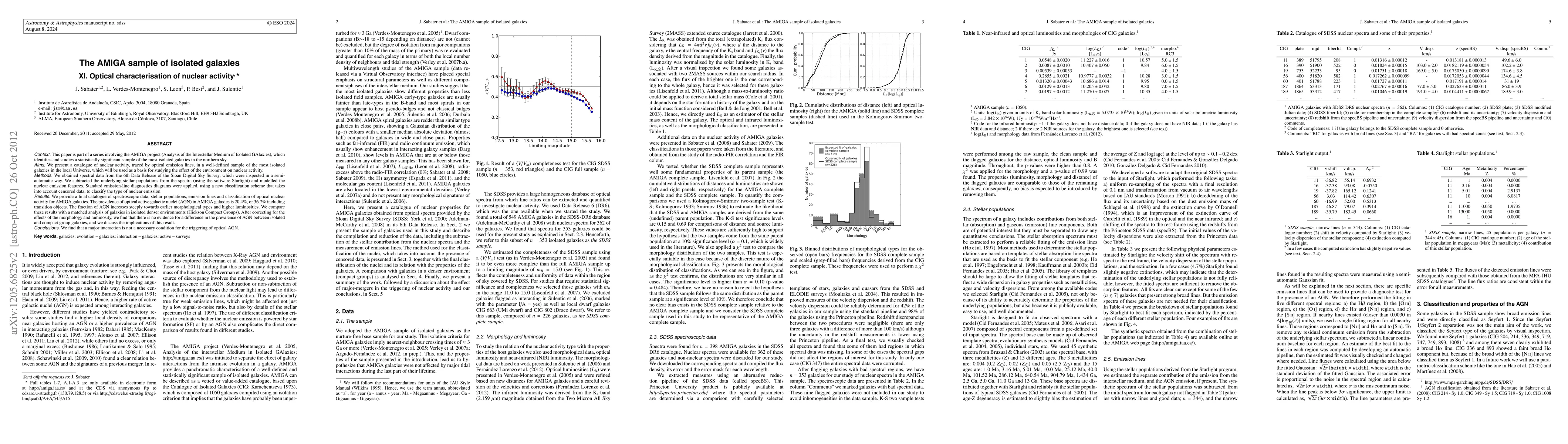 This paper presents a catalogue of nuclear activity in isolated galaxies from the AMIGA project, using optical emission lines to classify the activity. The study finds no significant difference in the prevalence of active galactic nuclei between isolated and denser environments, suggesting that major interactions are not necessary for triggering optical AGN.