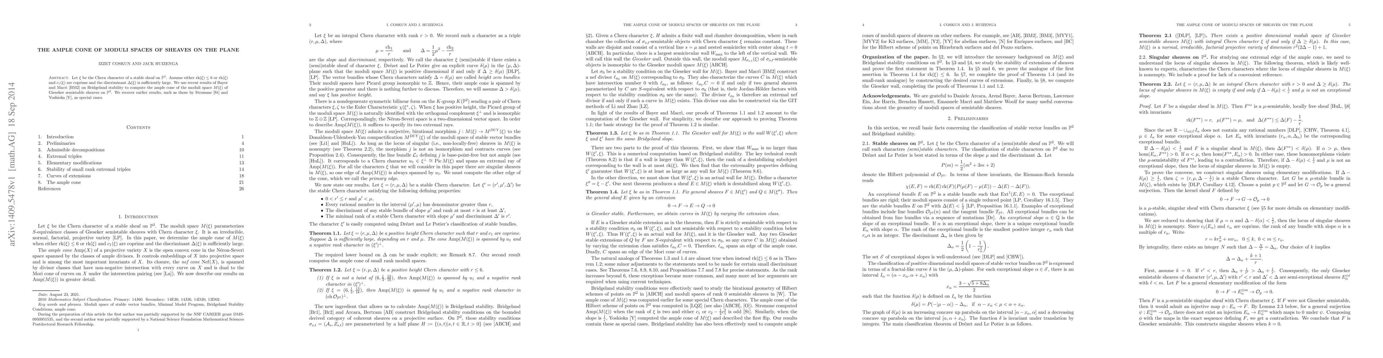 Researchers compute the ample cone of moduli spaces for sheaves on a plane with specific Chern character conditions, recovering earlier results as special cases.