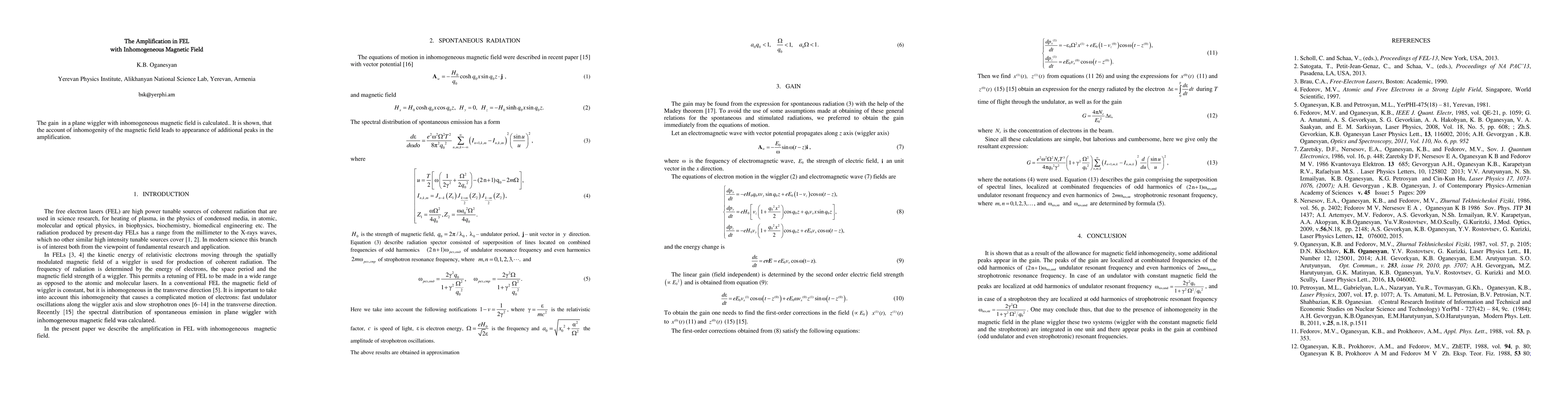Research reveals that inhomogeneous magnetic fields in a Free Electron Laser (FEL) lead to additional peaks in amplification gain, contradicting initial assumptions.