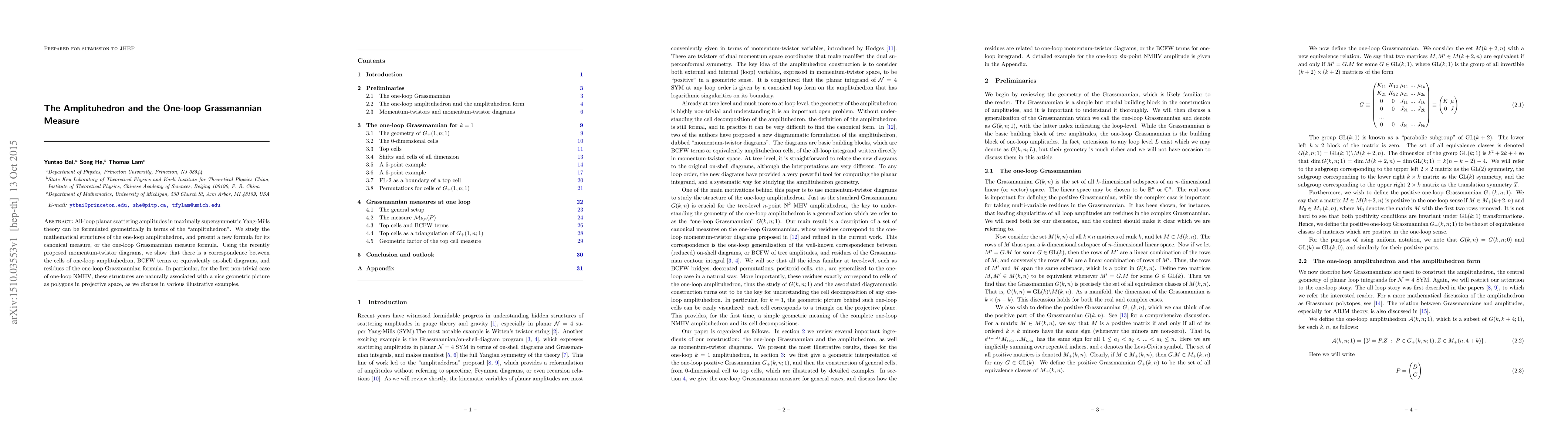 This paper formulates all-loop planar scattering amplitudes in supersymmetric Yang-Mills theory geometrically using the "amplituhedron." It introduces a new formula for the one-loop Grassmannian measure and demonstrates a correspondence between cells of the one-loop amplituhedron and residues of the Grassmannian formula, illustrated through geometric polygons in projective space for the one-loop NMHV case.