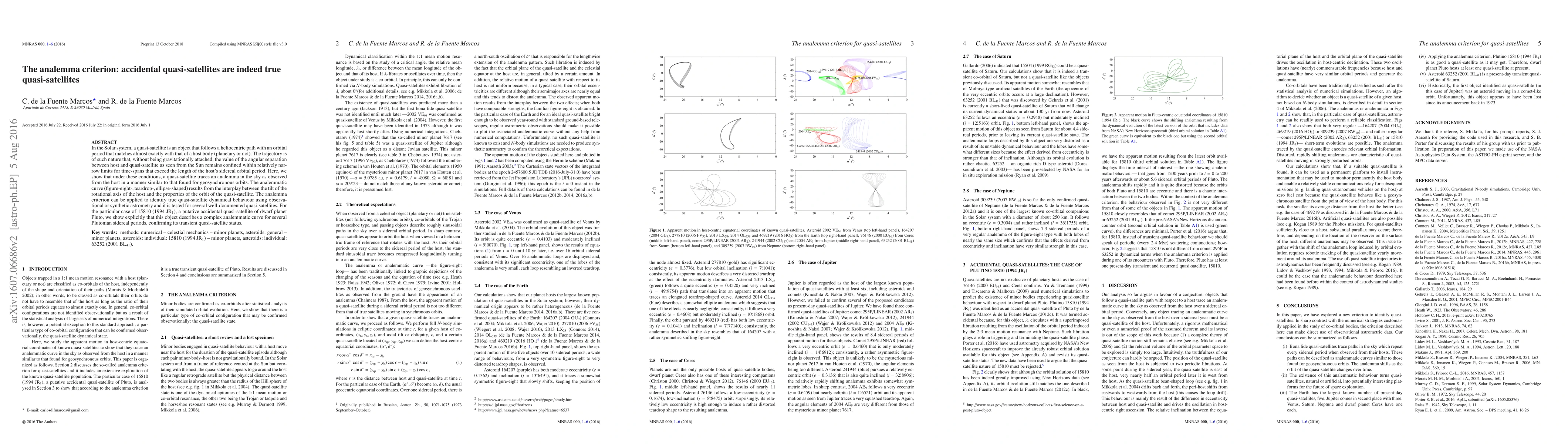 In the Solar system, a quasi-satellite is an object that follows a heliocentric path with an orbital period that matches almost exactly with that of a host body (planetary or not). The trajectory is of such nature that, without being gravitationally attached, the value of the angular separation between host and quasi-satellite as seen from the Sun remains confined within relatively narrow limits for time-spans that exceed the length of the host's sidereal orbital period. Here, we show that under these conditions, a quasi-satellite traces an analemma in the sky as observed from the host in a manner similar to that found for geosynchronous orbits. The analemmatic curve (figure-eight-, teardrop-, ellipse-shaped) results from the interplay between the tilt of the rotational axis of the host and the properties of the orbit of the quasi-satellite. The analemma criterion can be applied to identify true quasi-satellite dynamical behaviour using observational or synthetic astrometry and it is tested for several well-documented quasi-satellites. For the particular case of 15810 (1994 JR1), a putative accidental quasi-satellite of dwarf planet Pluto, we show explicitly that this object describes a complex analemmatic curve for several Plutonian sidereal periods, confirming its transient quasi-satellite status.