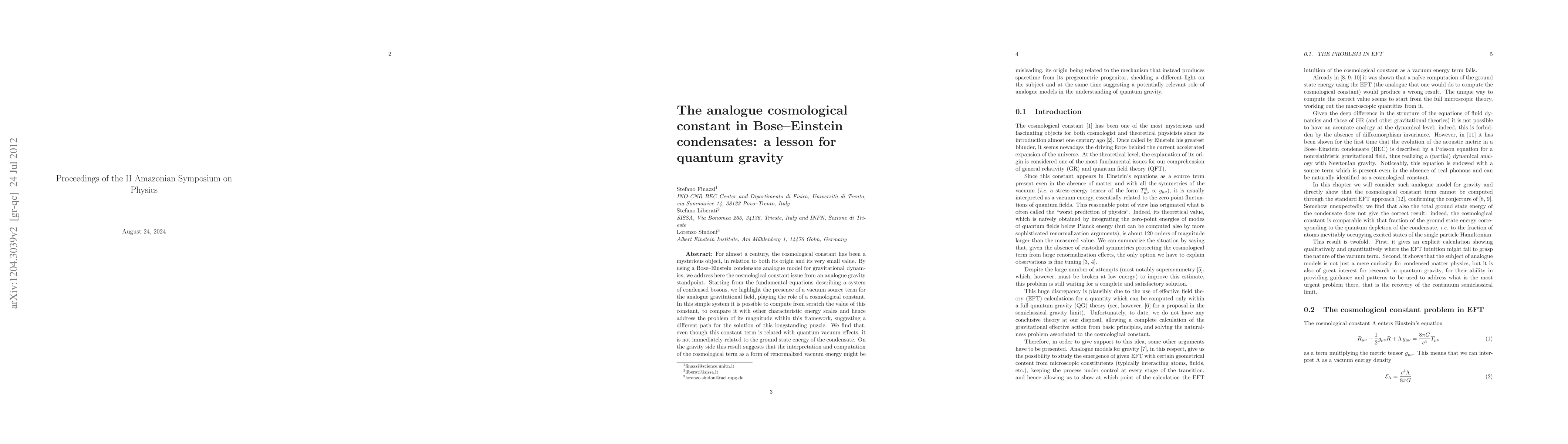 This paper explores the cosmological constant issue using a Bose-Einstein condensate analogue model, revealing a vacuum source term analogous to the cosmological constant and suggesting that its origin may not be tied to the ground state energy of the condensate. This finding implies a new perspective on quantum gravity and the potential relevance of analogue models in understanding it.