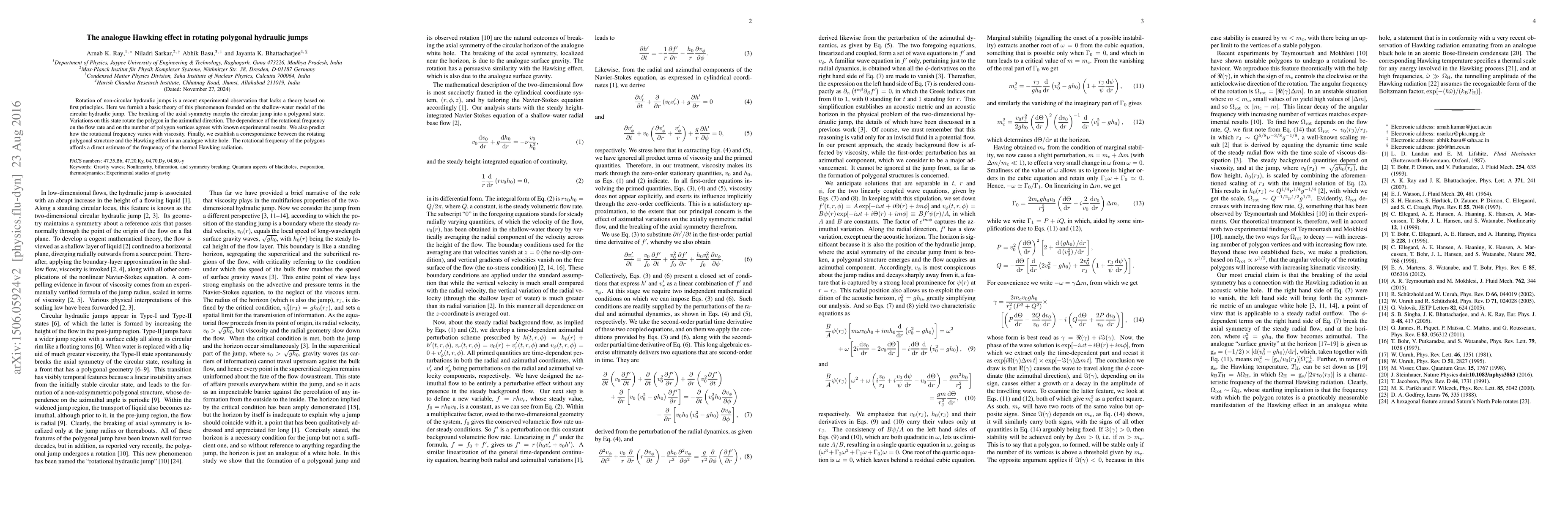 Researchers develop a theory explaining why rotating polygonal hydraulic jumps occur, which is analogous to Hawking radiation in black holes, and predict how viscosity affects the rotation frequency.