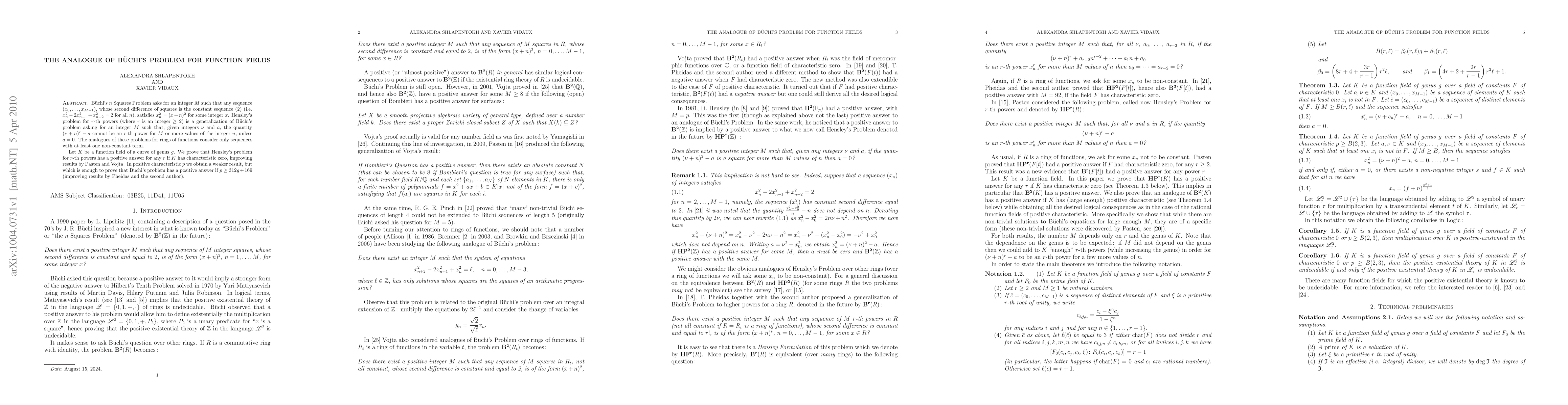 B\"uchi's $n$ Squares Problem asks for an integer $M$ such that any sequence $(x_0,...,x_{M-1})$, whose second difference of squares is the constant sequence $(2)$ (i.e. $x^2_n-2x^2_{n-1}+x_{n-2}^2=2$ for all $n$), satisfies $x_n^2=(x+n)^2$ for some integer $x$. Hensley's problem for $r$-th powers (where $r$ is an integer $\geq2$) is a generalization of B\"{u}chi's problem asking for an integer $M$ such that, given integers $\nu$ and $a$, the quantity $(\nu+n)^r-a$ cannot be an $r$-th power for $M$ or more values of the integer $n$, unless $a=0$. The analogues of these problems for rings of functions consider only sequences with at least one non-constant term. Let $K$ be a function field of a curve of genus $g$. We prove that Hensley's problem for $r$-th powers has a positive answer for any $r$ if $K$ has characteristic zero, improving results by Pasten and Vojta. In positive characteristic $p$ we obtain a weaker result, but which is enough to prove that B\"uchi's problem has a positive answer if $p\geq 312g+169$ (improving results by Pheidas and the second author).