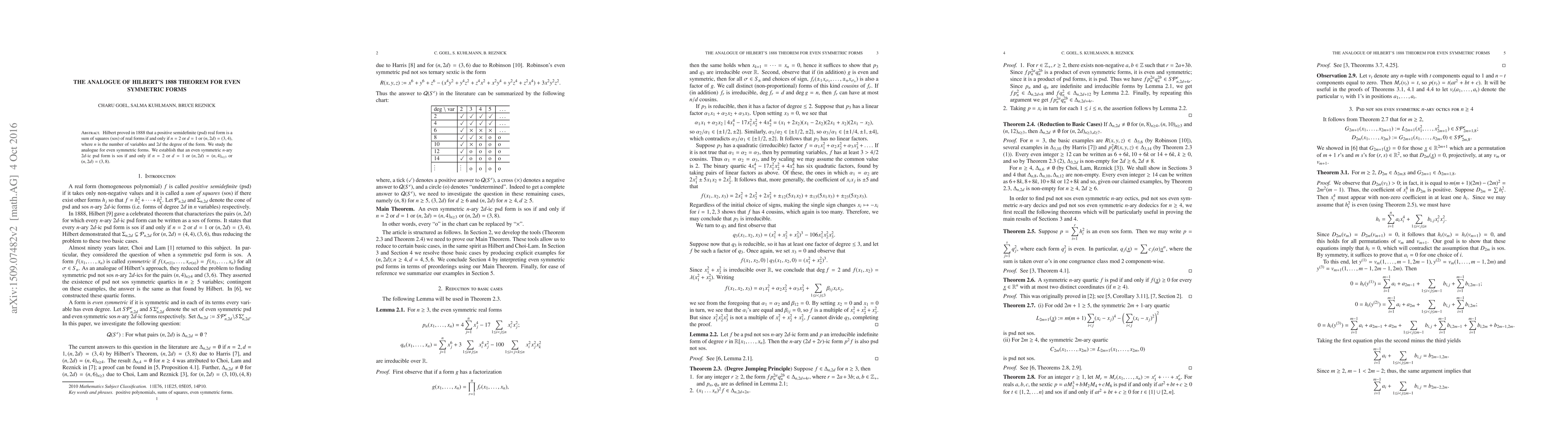 A 2023 research paper extends Hilbert's 1888 theorem to even symmetric forms, establishing conditions for a positive semidefinite form to be a sum of squares. The new conditions include additional cases where n is greater than or equal to 3 and the degree of the form is 4 or 8.