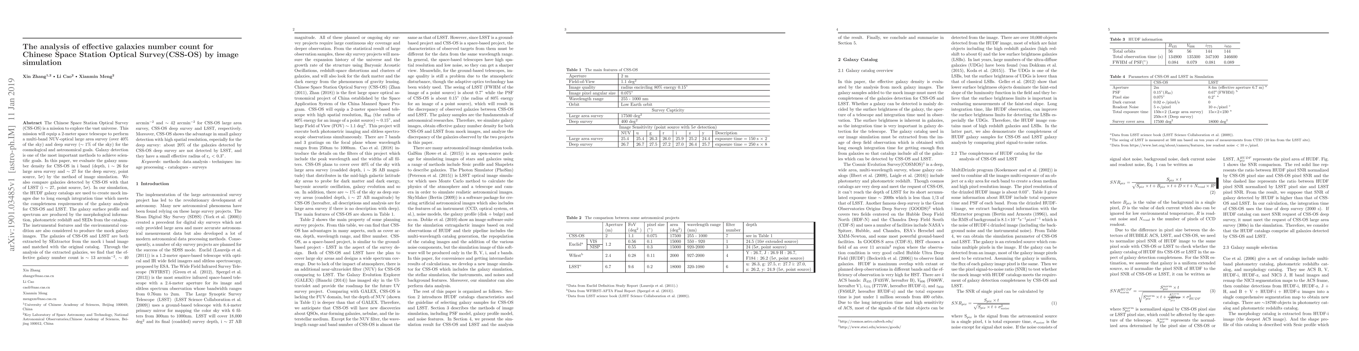The Chinese Space Station Optical Survey (CSS-OS) detects galaxies with a high spatial resolution, outperforming the Large Synoptic Survey Telescope (LSST), especially in small galaxy detection, which contributes to its cosmological goals.