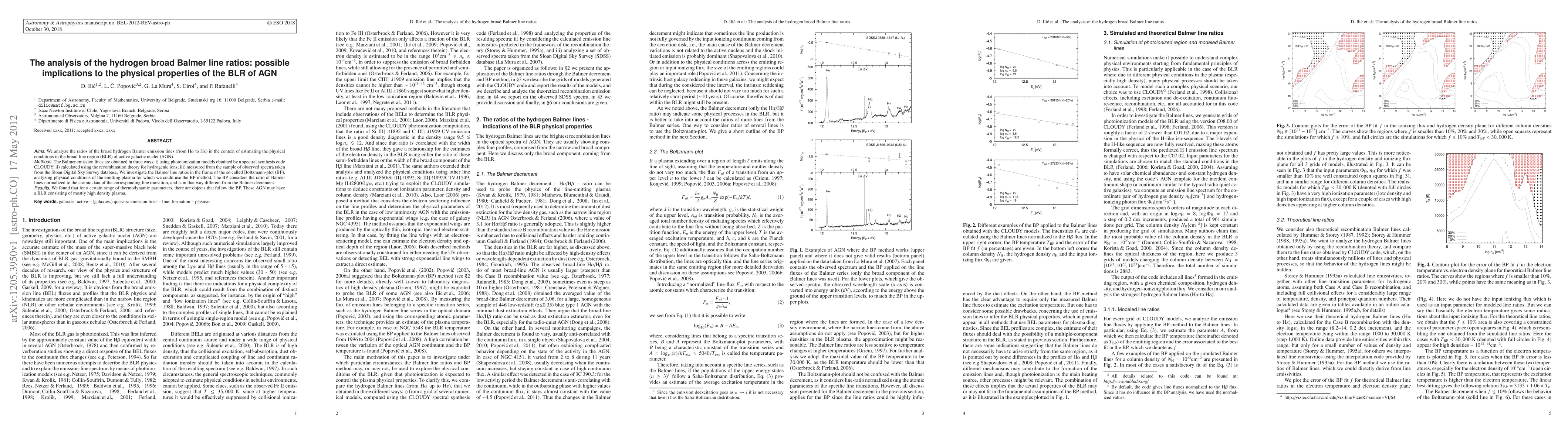 This paper analyzes broad hydrogen Balmer line ratios to estimate physical conditions in the broad line region (BLR) of active galactic nuclei (AGN). The study uses photoionization models, recombination theory, and observed spectra to investigate the Balmer line ratios via the Boltzmann-plot method, suggesting that some AGN may have a BLR dominated by high-density plasma.