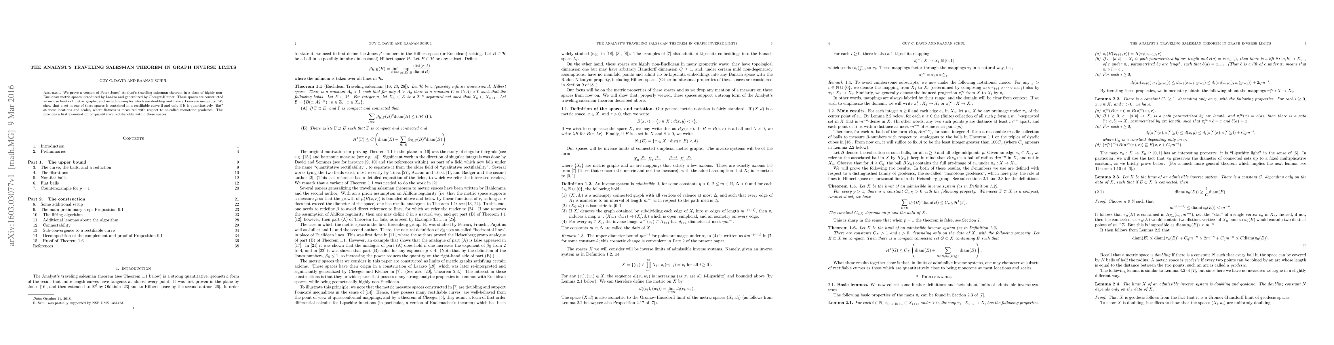 The paper proves a version of Peter Jones' Analyst's traveling salesman theorem for non-Euclidean metric spaces constructed via inverse limits of metric graphs, showing that a set is rectifiable if it is quantitatively "flat" relative to monotone geodesics. This study marks the first exploration of quantitative rectifiability in these generalized spaces.