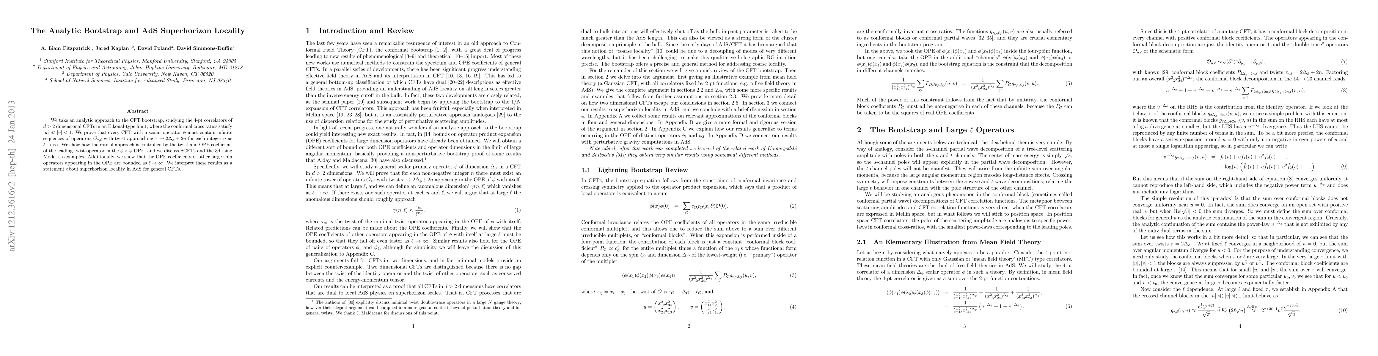 We take an analytic approach to the CFT bootstrap, studying the 4-pt correlators of d > 2 dimensional CFTs in an Eikonal-type limit, where the conformal cross ratios satisfy |u| << |v| < 1. We prove that every CFT with a scalar operator \phi must contain infinite sequences of operators O_{\tau,l} with twist approaching \tau -> 2\Delta_\phi + 2n for each integer n as l -> infinity. We show how the rate of approach is controlled by the twist and OPE coefficient of the leading twist operator in the \phi x \phi OPE, and we discuss SCFTs and the 3d Ising Model as examples. Additionally, we show that the OPE coefficients of other large spin operators appearing in the OPE are bounded as l -> infinity. We interpret these results as a statement about superhorizon locality in AdS for general CFTs.