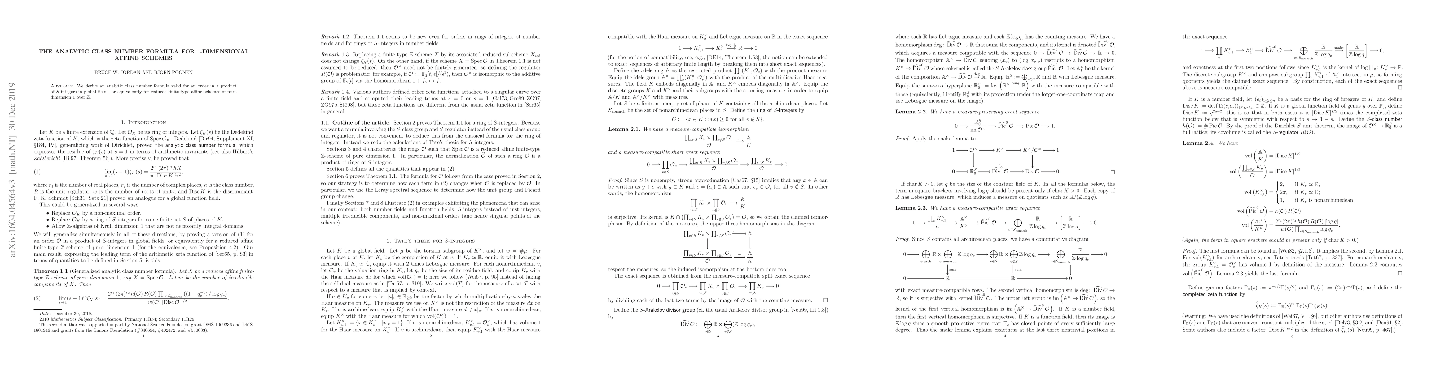 We derive an analytic class number formula valid for an order in a product of $S$-integers in global fields, or equivalently for reduced finite-type affine schemes of pure dimension $1$ over $\mathbb{Z}$.