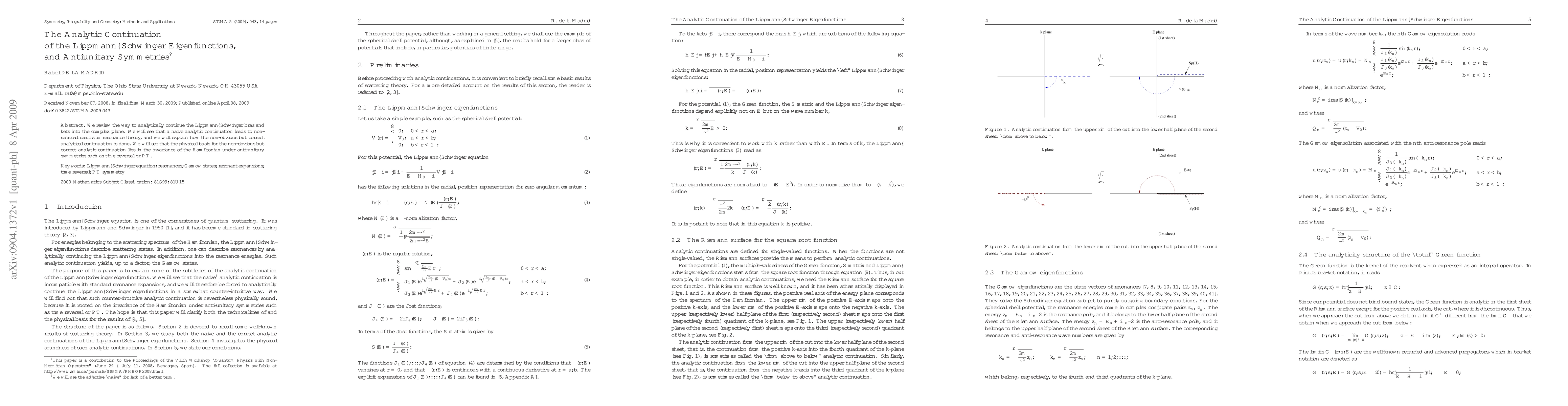 Summary: This paper discusses the proper method for analytically continuing Lippmann-Schwinger eigenfunctions into the complex plane, revealing that incorrect continuations lead to nonsensical results in resonance theory. It highlights the physical basis for the correct continuation, grounded in the Hamiltonian's invariance under anti-unitary symmetries like time reversal.