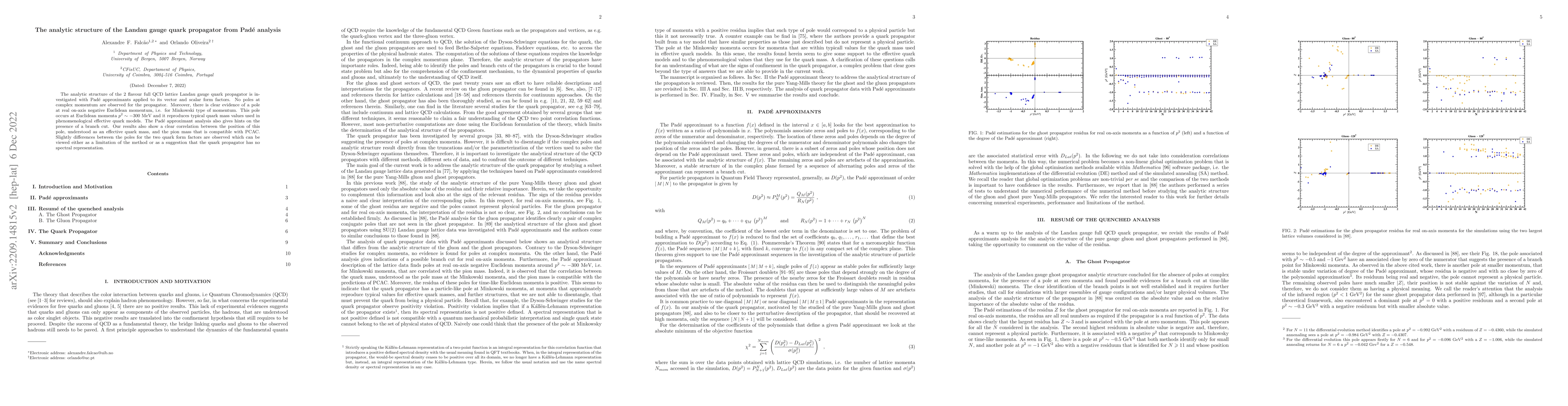 This paper investigates the analytic structure of the quark propagator in full QCD using Padé approximants, finding no complex poles but a real pole at negative Euclidean momentum. The analysis suggests a correlation between this pole, interpreted as an effective quark mass, and the pion mass, consistent with PCAC.