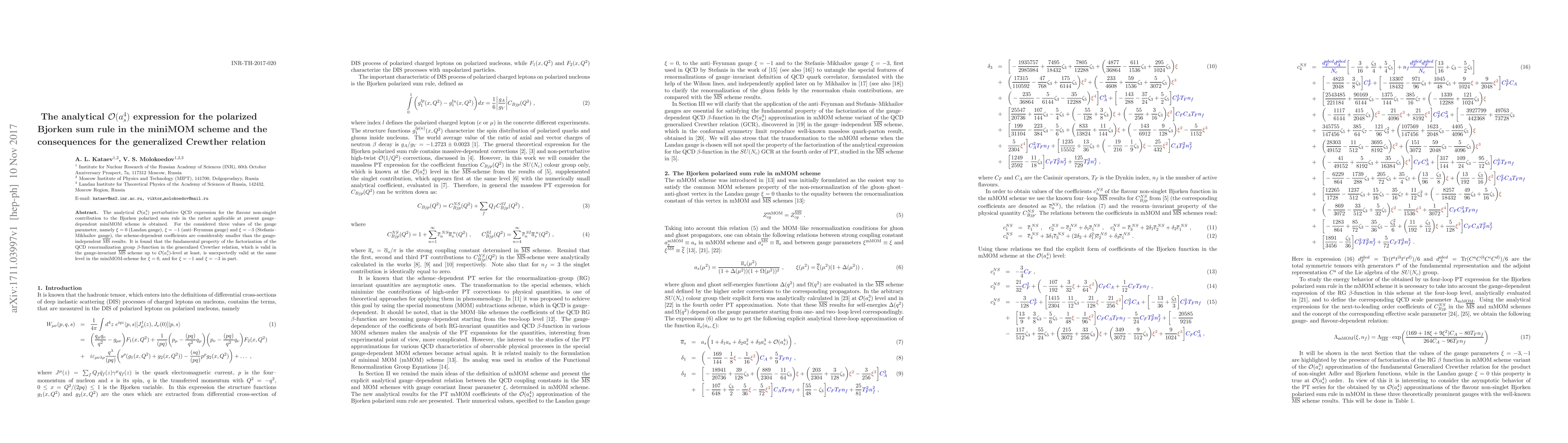 The analytical $\mathcal{O}(a^4_s)$ perturbative QCD expression for the flavour non-singlet contribution to the Bjorken polarized sum rule in the rather applicable at present gauge--dependent $\rm{miniMOM}$ scheme is obtained. For the considered three values of the gauge parameter, namely $\xi=0$ (Landau gauge), $\xi=-1$ (anti--Feynman gauge) and $\xi=-3$ (Stefanis--Mikhailov gauge), the scheme-dependent coefficients are considerably smaller than the gauge-independent $\rm{\overline{MS}}$ results. It is found that the fundamental property of the factorization of the QCD renormalization group $\beta$-function in the generalized Crewther relation, which is valid in the gauge-invariant $\rm{\overline{MS}}$ scheme up to $\mathcal{O}(a^4_s)$-level at least, is unexpectedly valid at the same level in the $\rm{miniMOM}$-scheme for $\xi=0$, and for $\xi=-1$ and $\xi=-3$ in part.