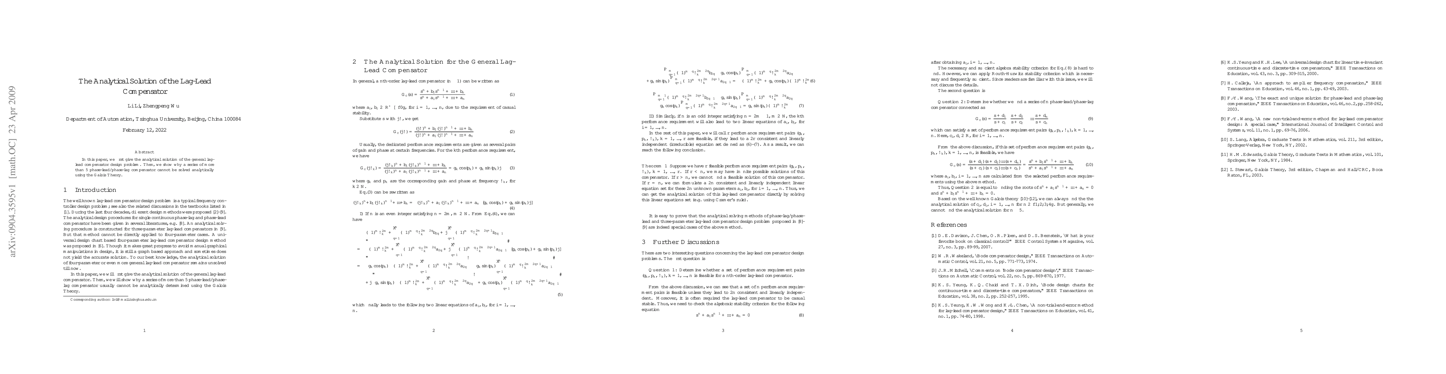 In this paper, we first give the analytical solution of the general lag-lead compensator design problem. Then, we show why a series of more than 5 phase-lead/phase-lag compensator cannot be solved analytically using the Galois Theory.