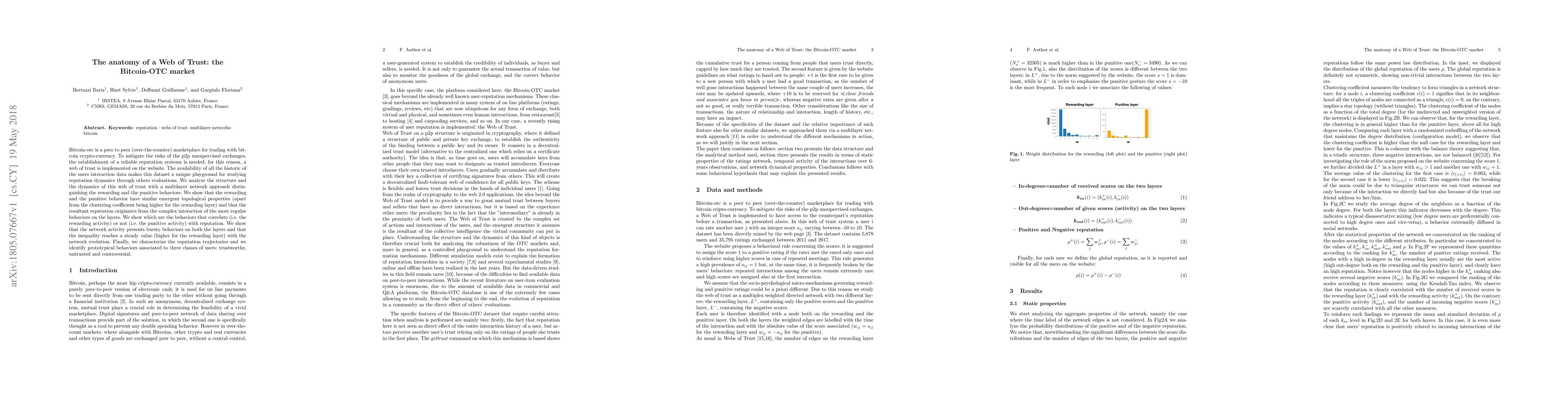 A study analyzes the Bitcoin-OTC market's reputation dynamics through a web of trust, finding that rewarding and punitive behaviors share emergent topological properties, with reputation emerging from regular behavior interactions.