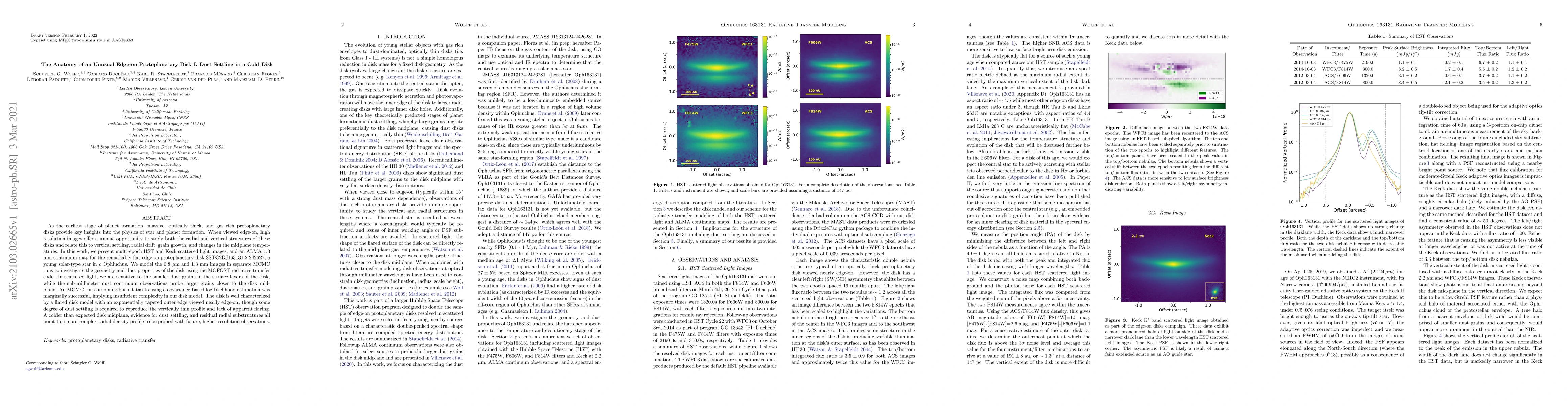 As the earliest stage of planet formation, massive, optically thick, and gas rich protoplanetary disks provide key insights into the physics of star and planet formation. When viewed edge-on, high resolution images offer a unique opportunity to study both the radial and vertical structures of these disks and relate this to vertical settling, radial drift, grain growth, and changes in the midplane temperatures. In this work, we present multi-epoch HST and Keck scattered light images, and an ALMA 1.3 mm continuum map for the remarkably flat edge-on protoplanetary disk SSTC2DJ163131.2-242627, a young solar-type star in $\rho$ Ophiuchus. We model the 0.8 $\mu$m and 1.3 mm images in separate MCMC runs to investigate the geometry and dust properties of the disk using the MCFOST radiative transfer code. In scattered light, we are sensitive to the smaller dust grains in the surface layers of the disk, while the sub-millimeter dust continuum observations probe larger grains closer to the disk midplane. An MCMC run combining both datasets using a covariance-based log-likelihood estimation was marginally successful, implying insufficient complexity in our disk model. The disk is well characterized by a flared disk model with an exponentially tapered outer edge viewed nearly edge-on, though some degree of dust settling is required to reproduce the vertically thin profile and lack of apparent flaring. A colder than expected disk midplane, evidence for dust settling, and residual radial substructures all point to a more complex radial density profile to be probed with future, higher resolution observations.