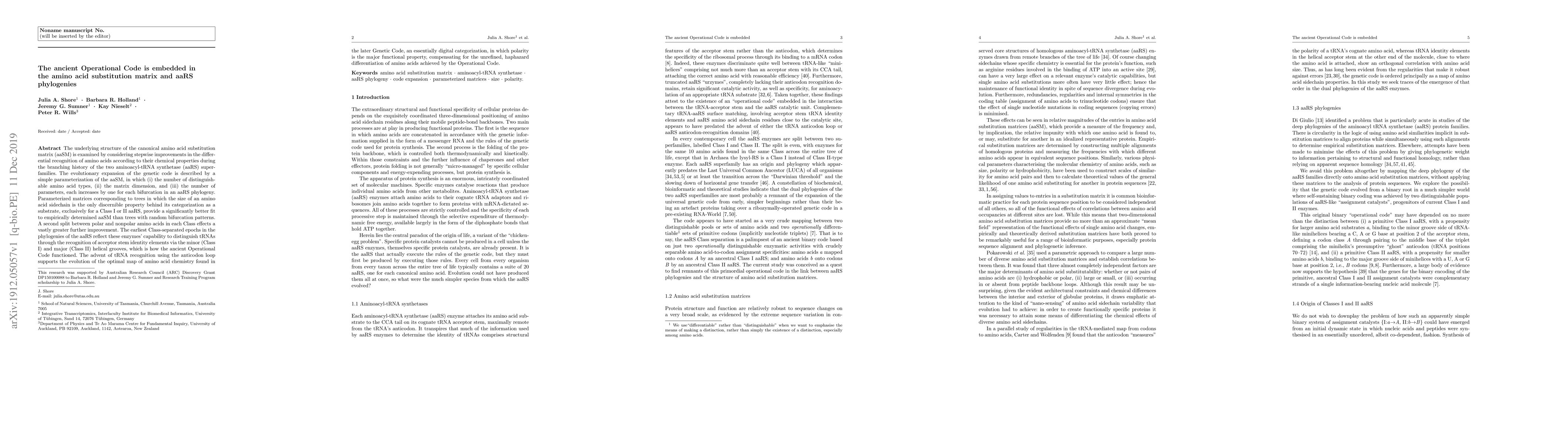 A study reveals that the ancient Operational Code for amino acid recognition in enzymes is reflected in the amino acid substitution matrix and phylogenies of aminoacyl-tRNA synthetases, with improved fits found when categorization is based on chemical properties.