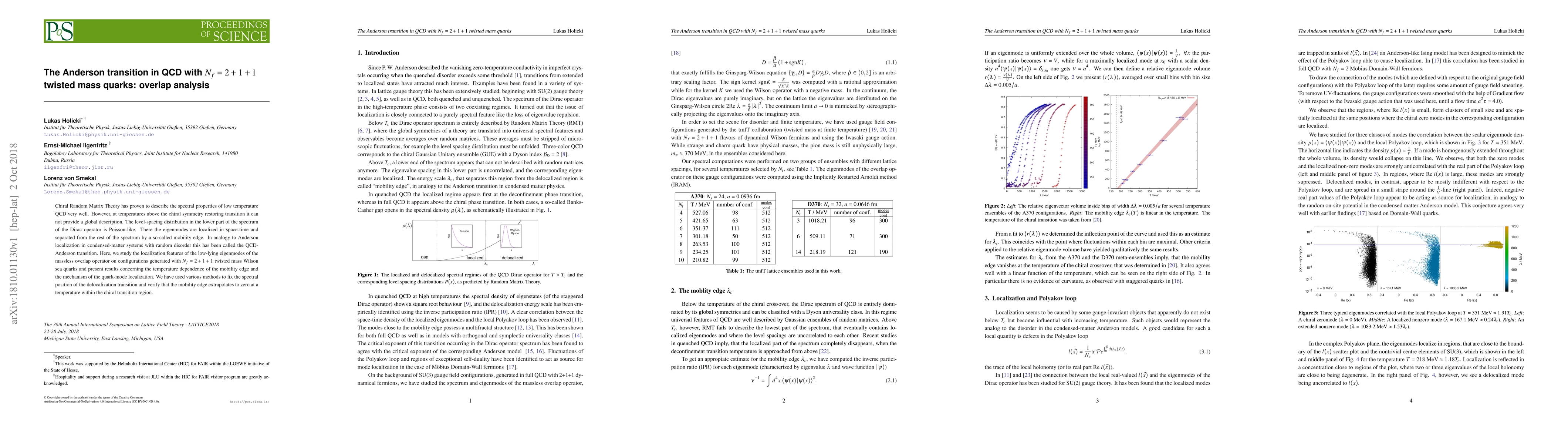 This work extends previous studies by applying the overlap operator and analyzing $N_f=2+1+1$ twisted mass quarks, offering a more detailed understanding of the QCD-Anderson transition and its implications for quark localization.