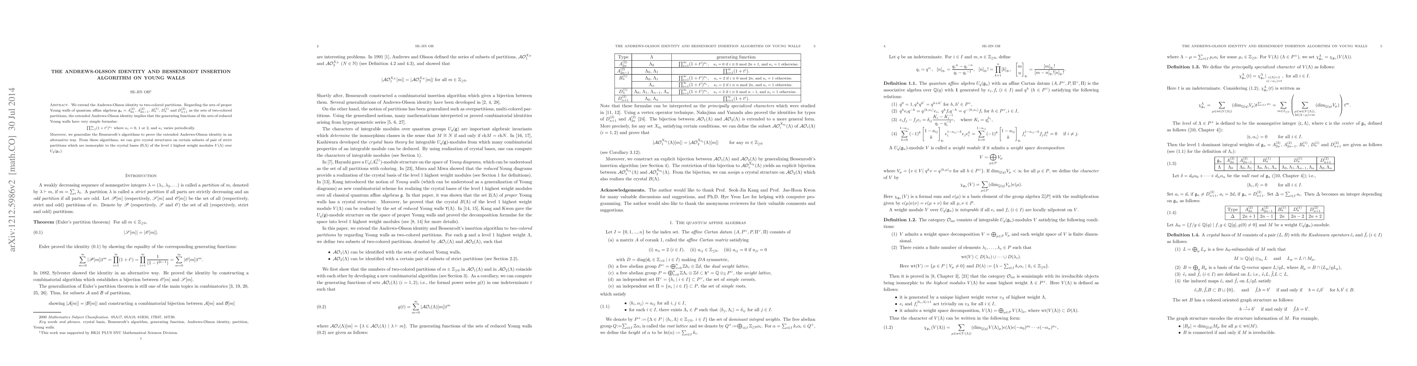 This paper extends the Andrews-Olsson identity to two-colored partitions, simplifying generating functions for Young walls in quantum affine algebras, and generalizes Bessenrodt's algorithm to prove the extended identity.