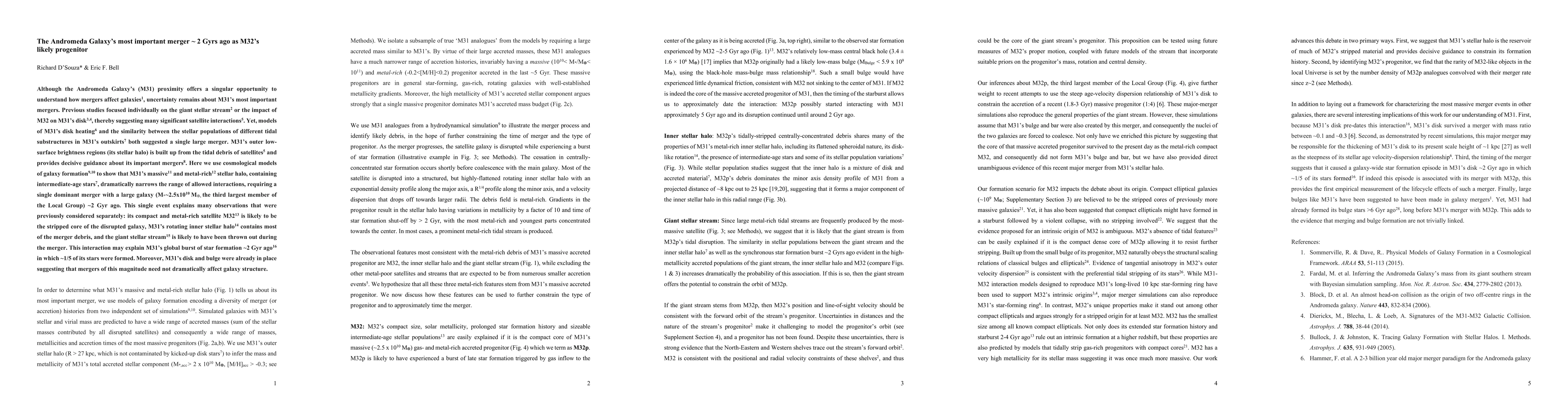 This paper identifies a single dominant merger about 2 billion years ago as the most significant event in the Andromeda galaxy's (M31) history, likely involving M32 as the progenitor. This merger explains various M31 features, including its stellar halo composition and a global star formation burst.