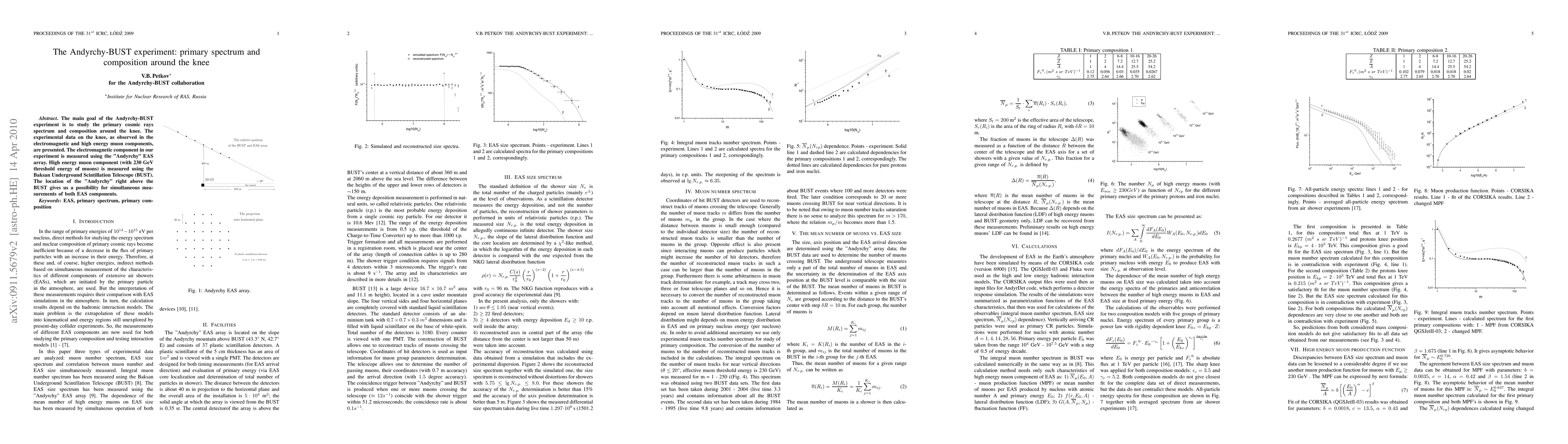 The Andyrchy-BUST experiment investigates the primary cosmic ray spectrum and composition around the knee, utilizing the "Andyrchy" EAS array and the Baksan Underground Scintillation Telescope (BUST) for simultaneous measurements of electromagnetic and high-energy muon components. Experimental data on the knee region are presented.