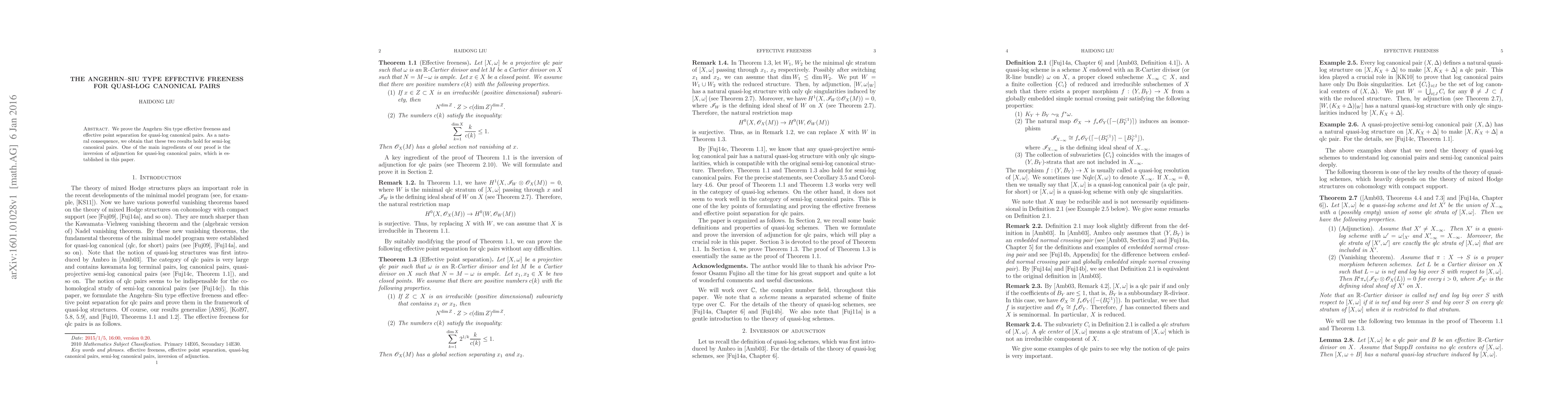 This paper proves the Angehrn-Siu Type effective freeness and effective point separation for quasi-log canonical pairs, extending these results to semi-log canonical pairs. The key ingredient is the newly established inversion of adjunction for quasi-log canonical pairs.