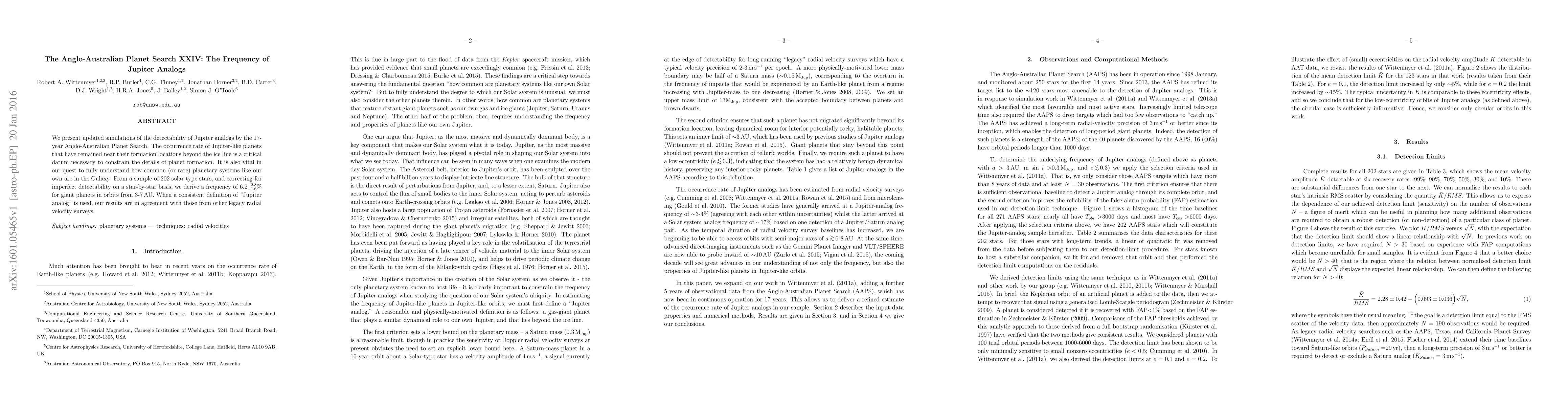 This study updates the frequency of Jupiter analogs detected by the Anglo-Australian Planet Search, finding a 6.2% occurrence rate for giant planets in 3-7 AU orbits. The results are crucial for understanding planet formation and the commonality of solar-type planetary systems in the Galaxy.