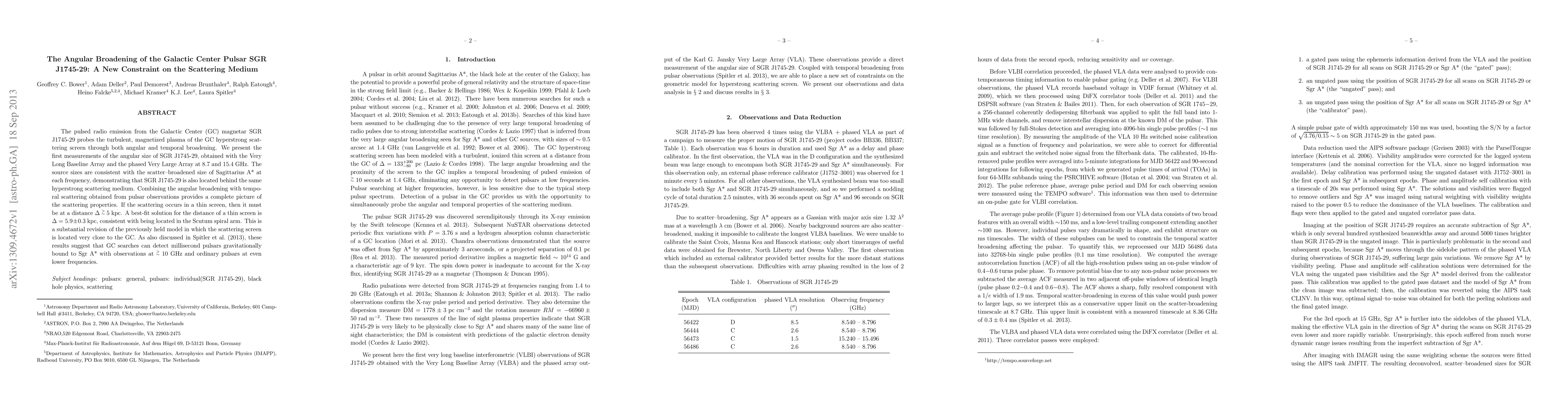 The pulsed radio emission from the Galactic Center (GC) magnetar SGR J1745-29 probes the turbulent, magnetized plasma of the GC hyperstrong scattering screen through both angular and temporal broadening. We present the first measurements of the angular size of SGR J1745-29, obtained with the Very Long Baseline Array and the phased Very Large Array at 8.7 and 15.4 GHz. The source sizes are consistent with the scatter--broadened size of Sagittarius A* at each frequency, demonstrating that SGR J1745-29 is also located behind the same hyperstrong scattering medium. Combining the angular broadening with temporal scattering obtained from pulsar observations provides a complete picture of the scattering properties. If the scattering occurs in a thin screen, then it must be at a distance \Delta >~ 5 kpc. A best-fit solution for the distance of a thin screen is \Delta=5.9 +/-0.3 kpc, consistent with being located in the Scutum spiral arm. This is a substantial revision of the previously held model in which the scattering screen is located very close to the GC. As also discussed in Spitler et al., these results suggest that GC searches can detect millisecond pulsars gravitationally bound to Sgr A* with observations at >~ 10 GHz and ordinary pulsars at even lower frequencies.