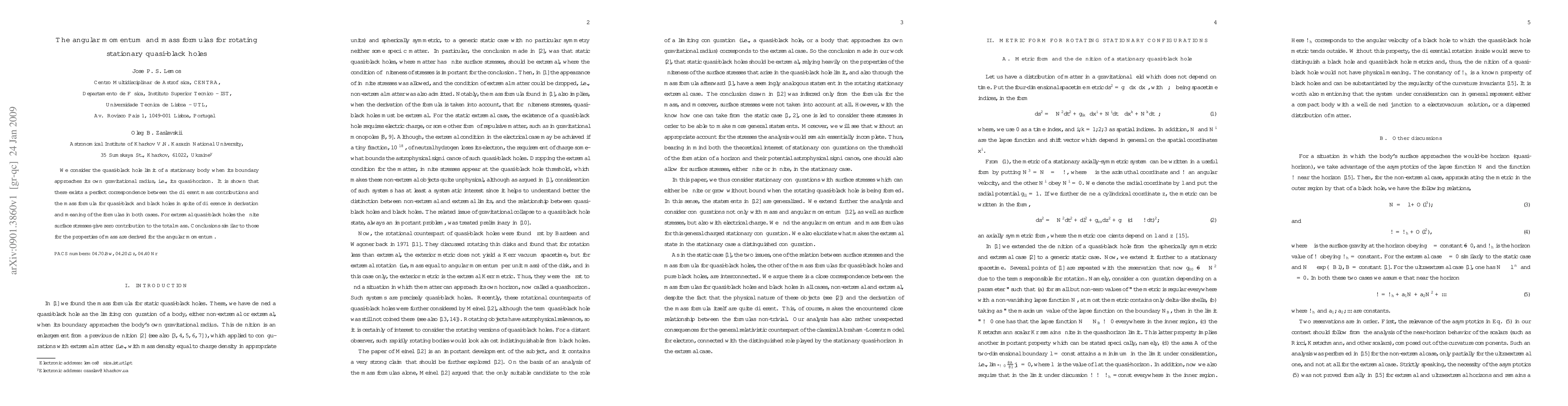 This paper explores the mass and angular momentum formulas for rotating stationary quasi-black holes, demonstrating a correspondence between quasi-black and black hole mass formulas despite different derivations. For extremal quasi-black holes, finite surface stresses contribute zero to the total mass, with similar conclusions drawn for angular momentum.