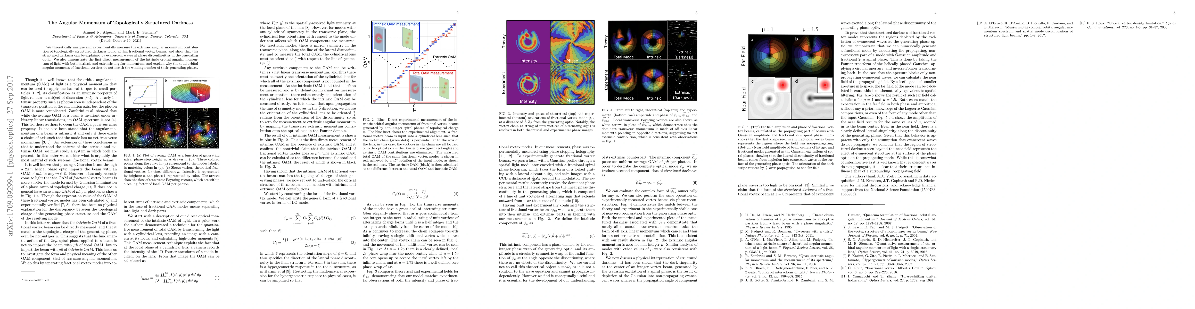 We theoretically analyze and experimentally measure the extrinsic angular momentum contribution of topologically structured darkness found within fractional vortex beams, and show that this structured darkness can be explained by evanescent waves at phase discontinuities in the generating optic. We also demonstrate the first direct measurement of the intrinsic orbital angular momentum of light with both intrinsic and extrinsic angular momentum, and explain why the total orbital angular momenta of fractional vortices do not match the winding number of their generating phases.