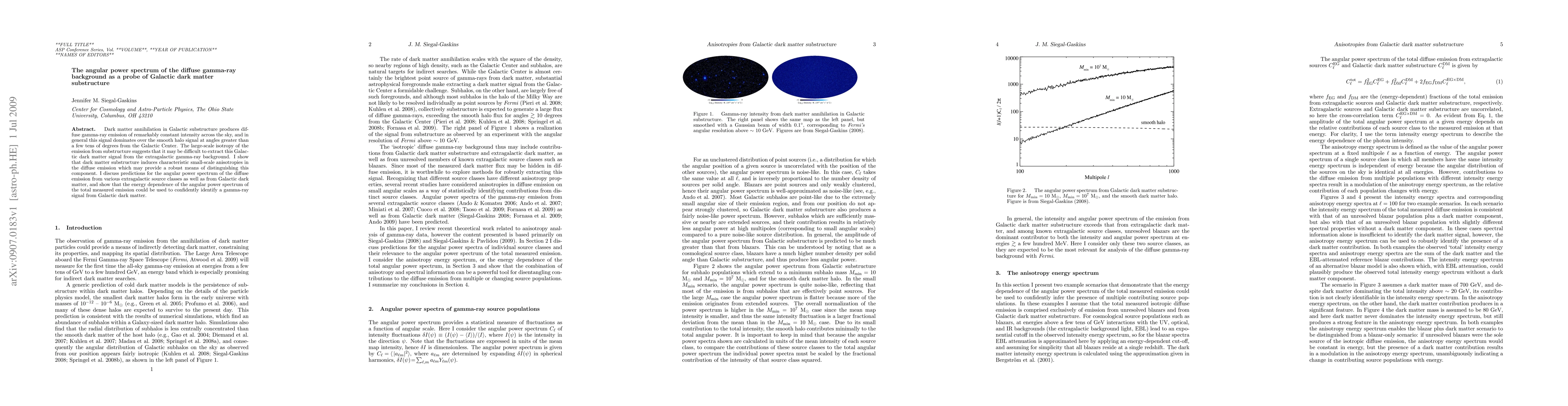 This paper explores the angular power spectrum of the diffuse gamma-ray background to identify signatures of Galactic dark matter substructure. It suggests that small-scale anisotropies in the gamma-ray emission, induced by dark matter annihilation, can distinguish the Galactic dark matter signal from extragalactic sources, offering a method to confidently detect this signal.