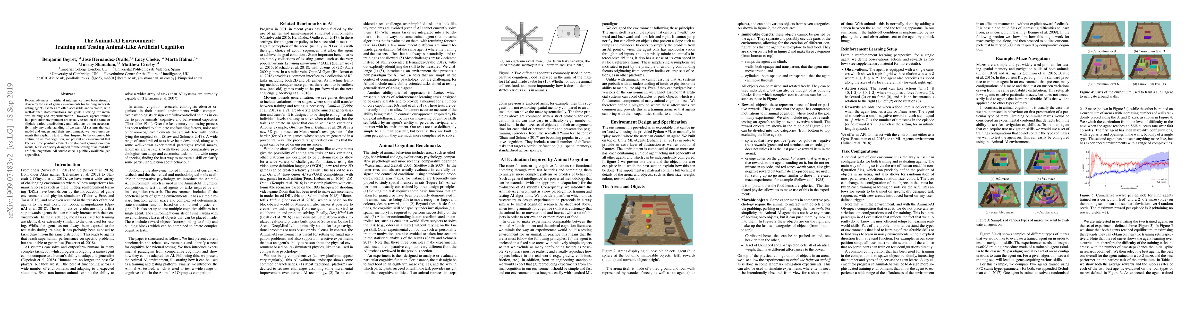 Recent advances in artificial intelligence have been strongly driven by the use of game environments for training and evaluating agents. Games are often accessible and versatile, with well-defined state-transitions and goals allowing for intensive training and experimentation. However, agents trained in a particular environment are usually tested on the same or slightly varied distributions, and solutions do not necessarily imply any understanding. If we want AI systems that can model and understand their environment, we need environments that explicitly test for this. Inspired by the extensive literature on animal cognition, we present an environment that keeps all the positive elements of standard gaming environments, but is explicitly designed for the testing of animal-like artificial cognition.