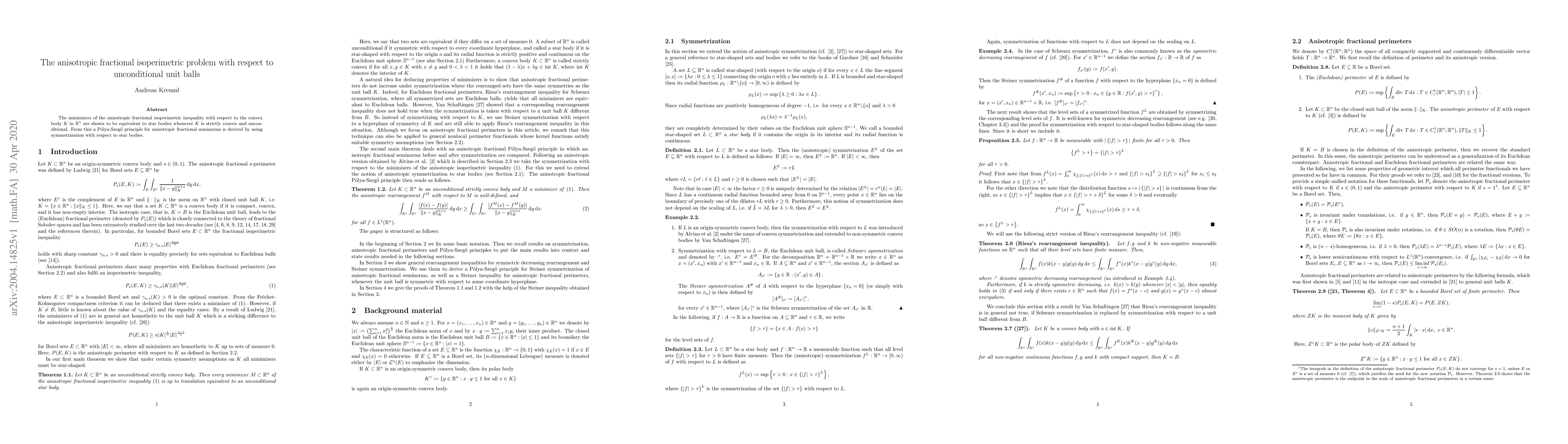 Summary: This paper demonstrates that the minimizers of the anisotropic fractional isoperimetric inequality for strictly convex and unconditional convex bodies $K$ in $\mathbb{R}^n$ are star bodies, and derives a Pólya-Szegő principle for anisotropic fractional seminorms through symmetrization.