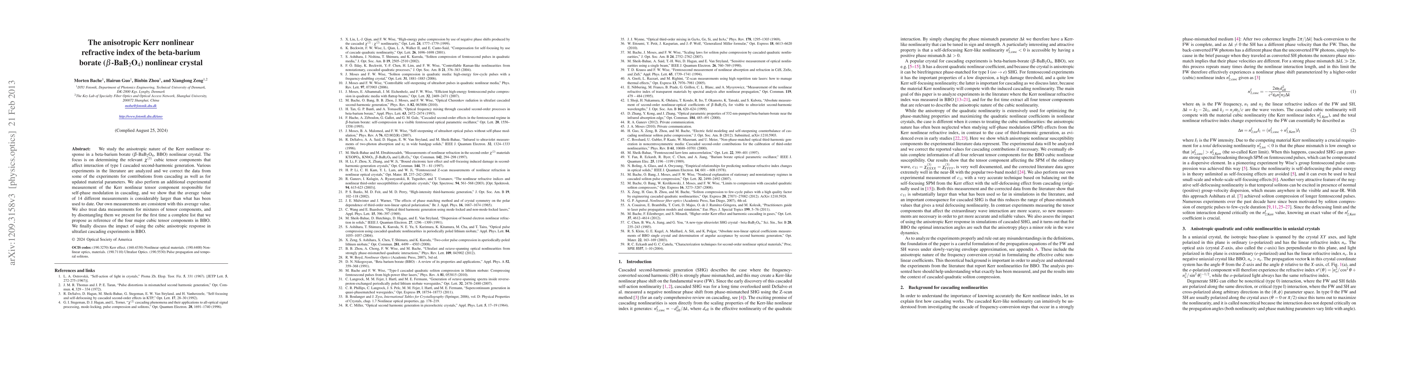 We study the anisotropic nature of the Kerr nonlinear response in a beta-barium borate (\beta-BaB2O4, BBO) nonlinear crystal. The focus is on determining the relevant $\chi^{(3)}$ cubic tensor components that affect interaction of type I cascaded second-harmonic generation. Various experiments in the literature are analyzed and we correct the data from some of the experiments for contributions from cascading as well as for updated material parameters. We find that the Kerr nonlinear tensor component responsible for self-phase modulation in cascading is considerably larger than what has been used to date. We evaluate the impact of using such a cubic anisotropic response in ultrafast cascading experiments.