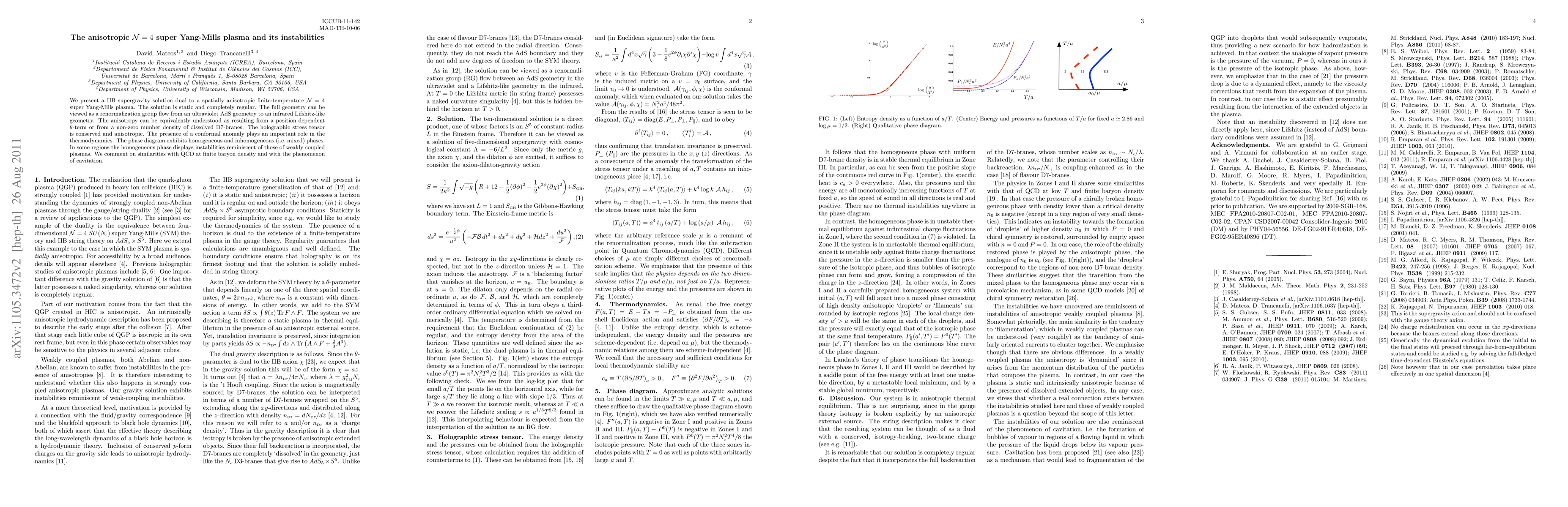 We present a IIB supergravity solution dual to a spatially anisotropic finite-temperature N=4 super Yang-Mills plasma. The solution is static, possesses an anisotropic horizon, and is completely regular. The full geometry can be viewed as a renormalization group flow from an AdS geometry in the ultraviolet to a Lifshitz-like geometry in the infrared. The anisotropy can be equivalently understood as resulting from a position-dependent theta-term or from a non-zero number density of dissolved D7-branes. The holographic stress tensor is conserved and anisotropic. The presence of a conformal anomaly plays an important role in the thermodynamics of the system. We construct the phase diagram, which exhibits homogeneous and inhomogeneous (i.e. mixed) phases, and comment on similarities with QCD at finite baryon density. At low densities the homogeneous phase displays several instabilities reminiscent of instabilities of weakly coupled plasmas.