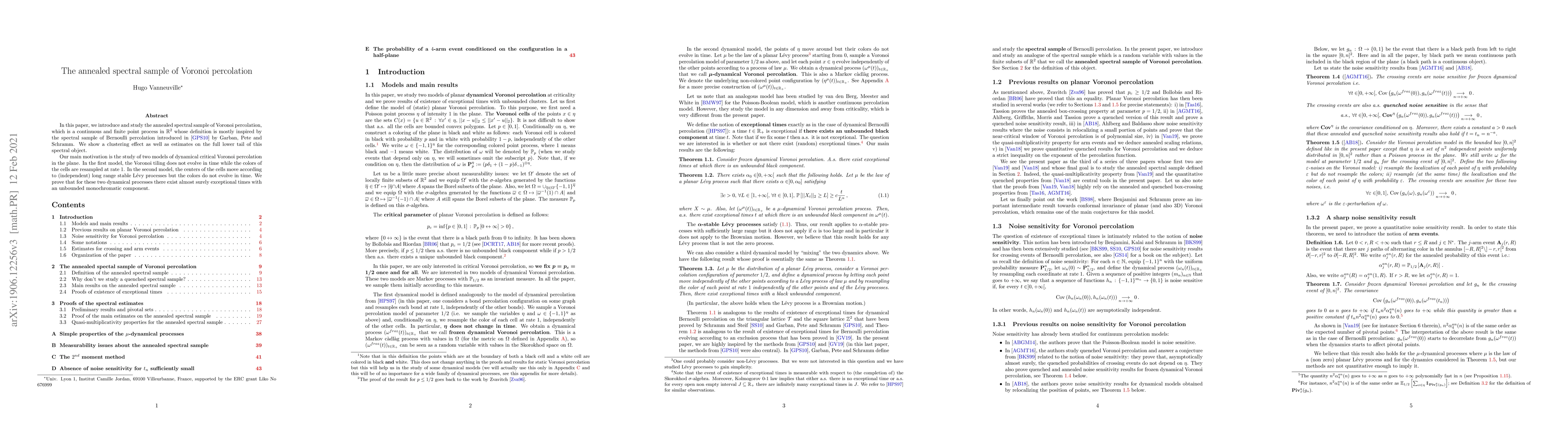 This paper investigates the annealed spectral sample of Voronoi percolation, demonstrating a clustering effect and lower tail estimates. It explores two dynamical critical models: one where cell colors resample over time while the tiling remains static, and another where cell centers move via independent Lévy processes without color change, proving the existence of almost surely exceptional times with unbounded monochromatic components.