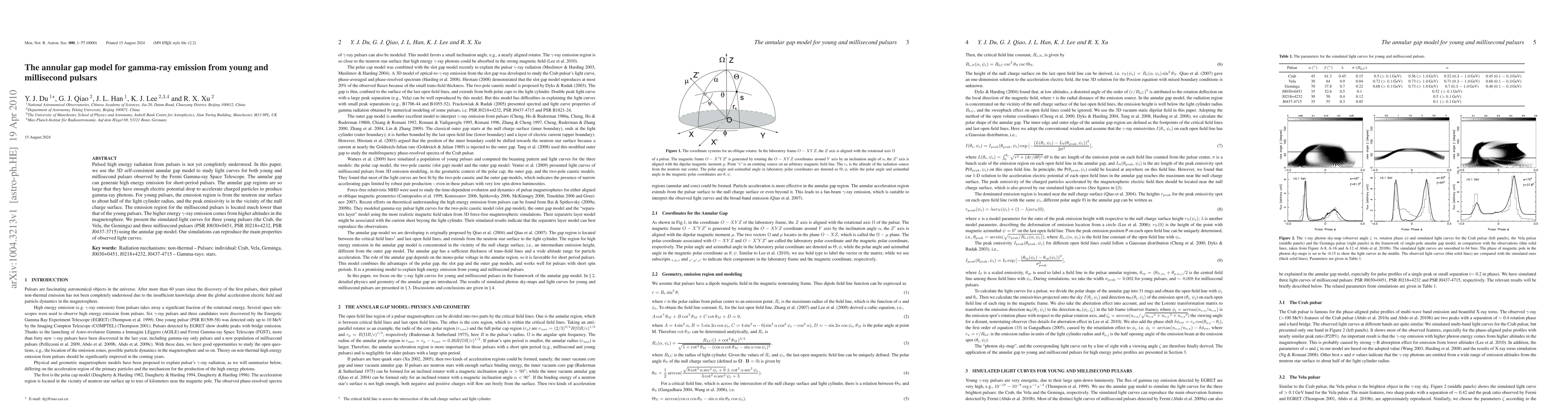 This paper employs a 3D self-consistent annular gap model to investigate gamma-ray emission from both young and millisecond pulsars, using Fermi Gamma-ray observations. The model explains high-energy emission from annular gap regions with sufficient electric potential to accelerate particles, producing gamma-ray photons.