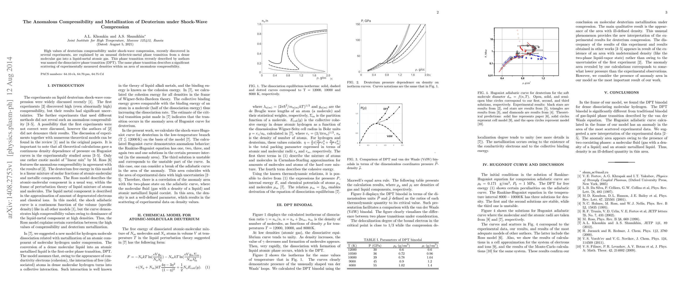 This study explains the high compressibility of deuterium under shock-wave compression through a dissociative phase transition (DPT) that transforms it from a dense molecular gas into a liquid-metal atomic gas, explaining the observed anomalous compressibility and scattering of measured densities.