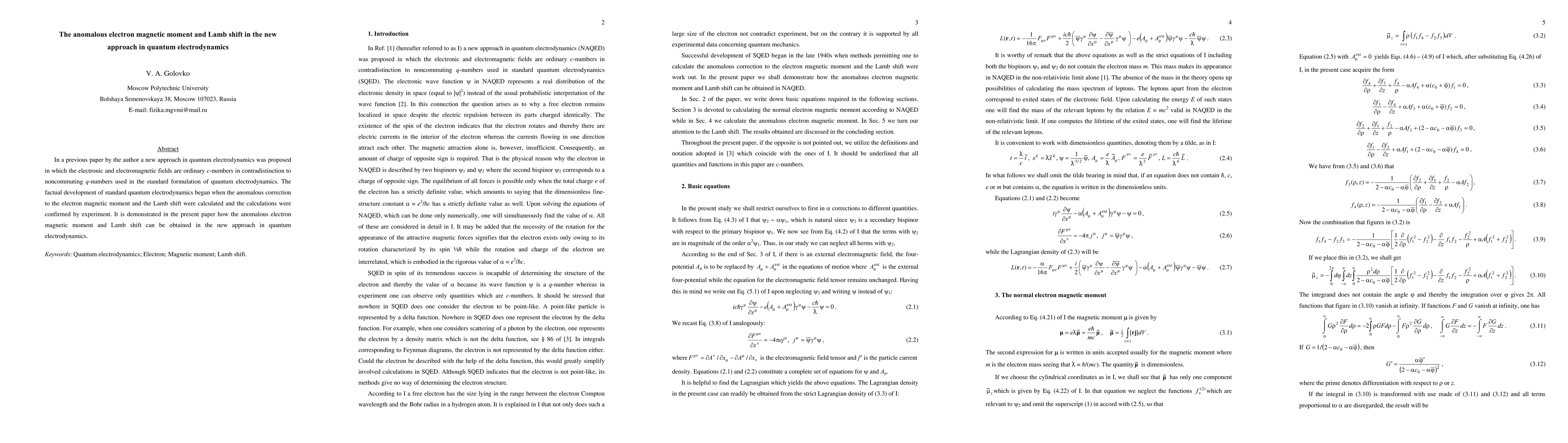 This paper proposes a novel approach to quantum electrodynamics where electronic and electromagnetic fields are treated as ordinary c-numbers, differing from standard q-number methods. It successfully calculates the anomalous electron magnetic moment and Lamb shift, demonstrating the validity of this new approach.