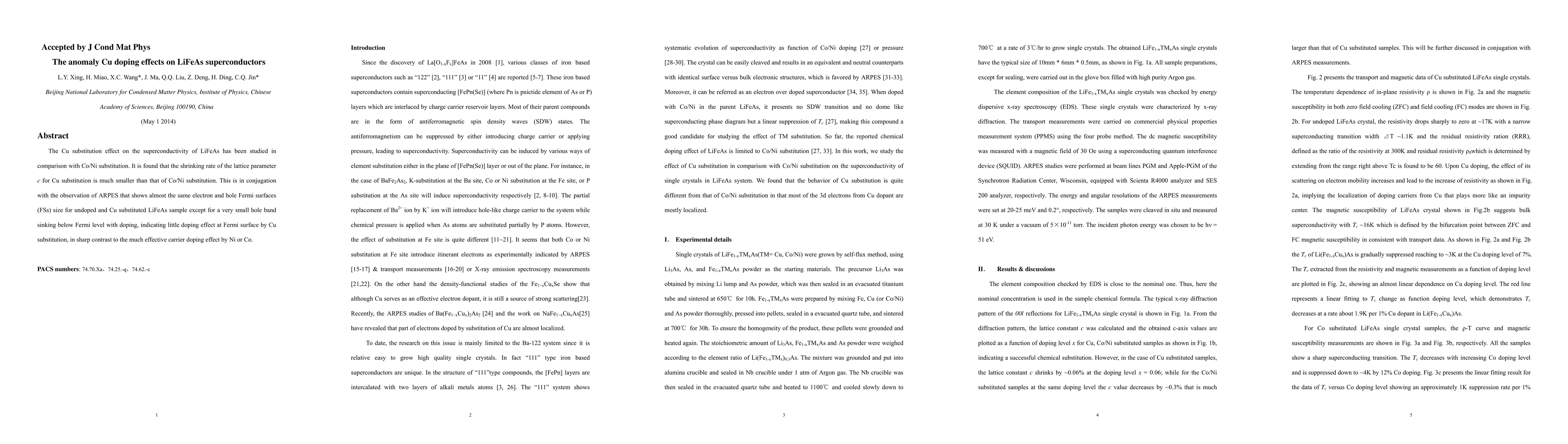 This contrasts with the effective carrier doping effect observed in Co/Ni substituted samples, highlighting unique characteristics of Cu substitution.