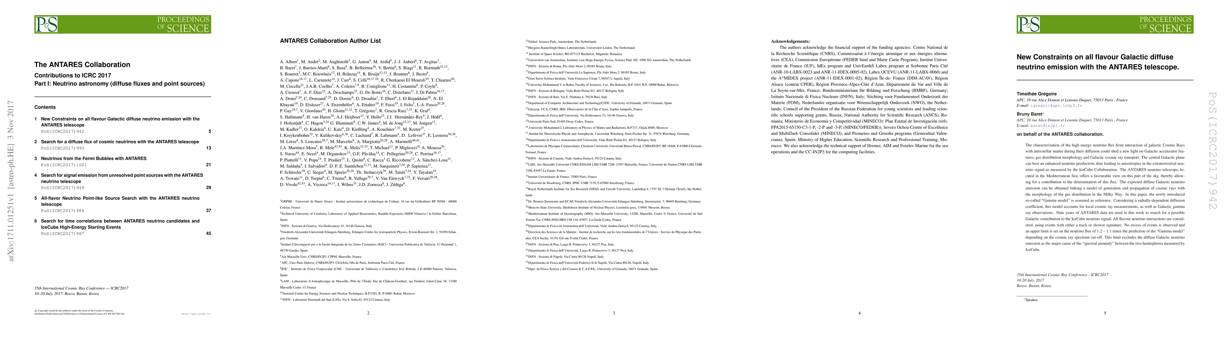 Papers on neutrino astronomy (diffuse fluxes and point sources, prepared for the 35th International Cosmic Ray Conference (ICRC 2017, Busan, South Korea) by the ANTARES Collaboration