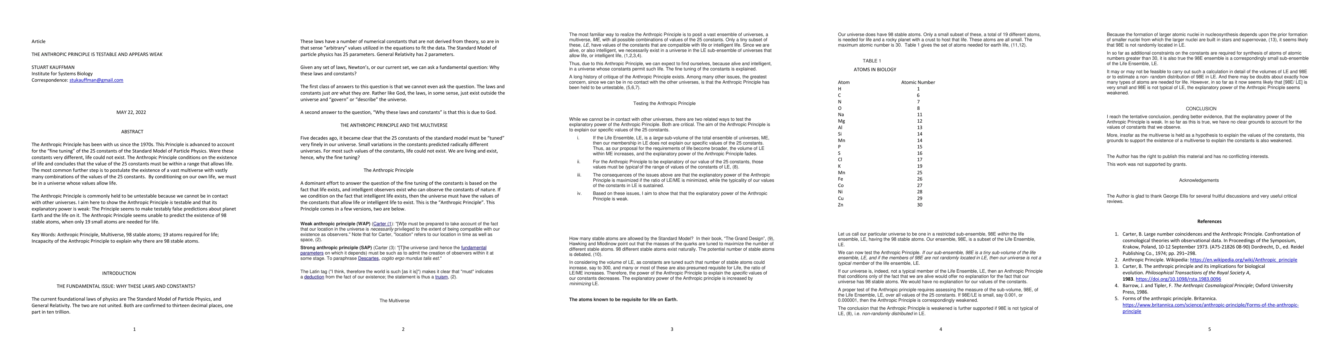 This paper argues that the Anthropic Principle, which posits that the constants of physics are fine-tuned to allow life, is testable and demonstrates its explanatory power is weak by showing it fails to predict the existence of 98 stable atoms when only 19 are necessary for life.