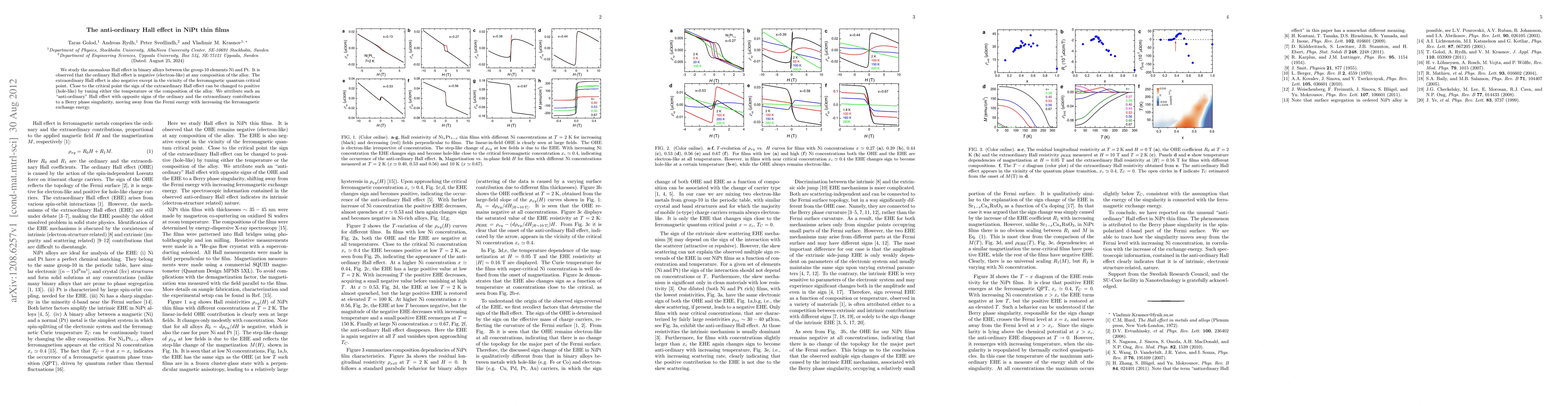 The novelty of this work lies in the identification and characterization of the anti-ordinary Hall effect in NiPt alloys, attributing it to a Berry phase singularity, which offers new insights into the interplay between ferromagnetism and electronic structure in these materials.