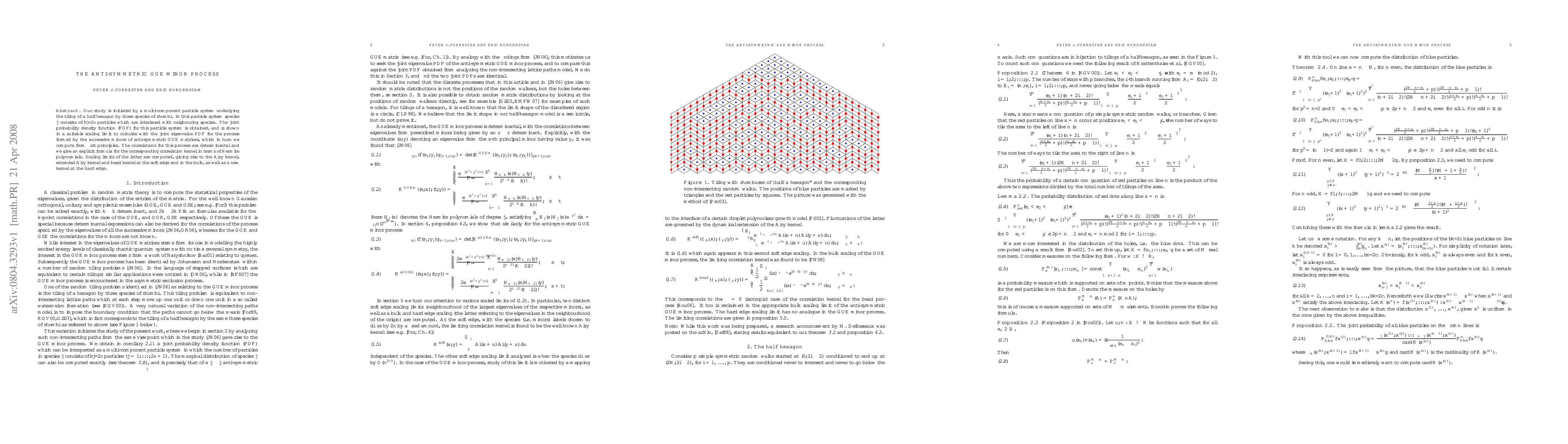 This paper derives the joint probability density function for a multi-component particle system based on tiling a half hexagon with three species of rhombi, showing it converges to the joint eigenvalue distribution of anti-symmetric GUE matrices. It also provides an explicit determinantal correlation kernel expressed in terms of Hermite polynomials and computes scaling limits resulting in various kernels, including a new kernel at the hard edge.