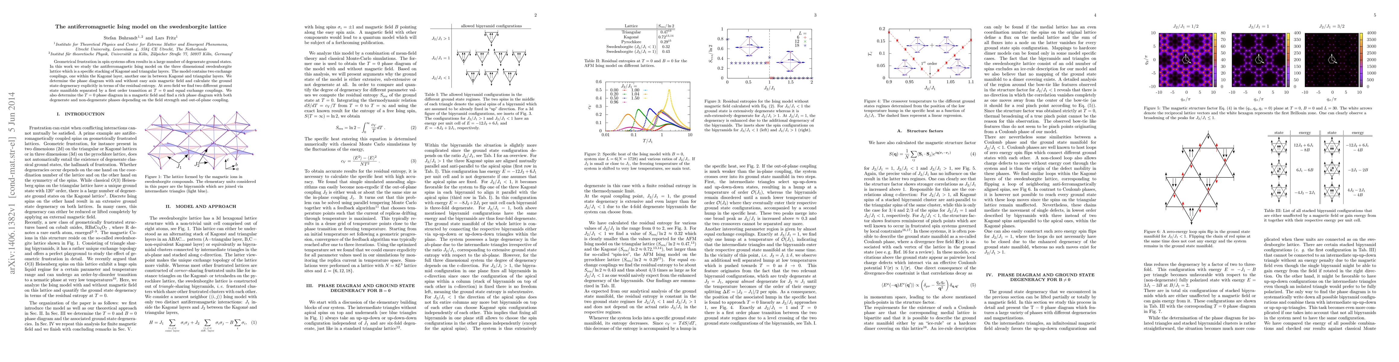 Geometrical frustration in spin systems often results in a large number of degenerate ground states. In this work we study the antiferromagnetic Ising model on the three dimensional swedenborgite lattice which is a specific stacking of Kagom\'e and triangular layers. The model contains two exchange couplings, one within the Kagom\'e layer, another one in between Kagom\'e and triangular layers. We determine the phase diagram with and without easy axis magnetic field and calculate the ground state degeneracy explicitly in terms of the residual entropy. At zero field we find two different ground state manifolds separated by a first order transition at T = 0 and equal exchange couplings. We also determine the T = 0 phase diagram in a magnetic field and find a rich phase diagram with both degenerate and non-degenerate phases depending on the field strength and out-of-plane coupling.