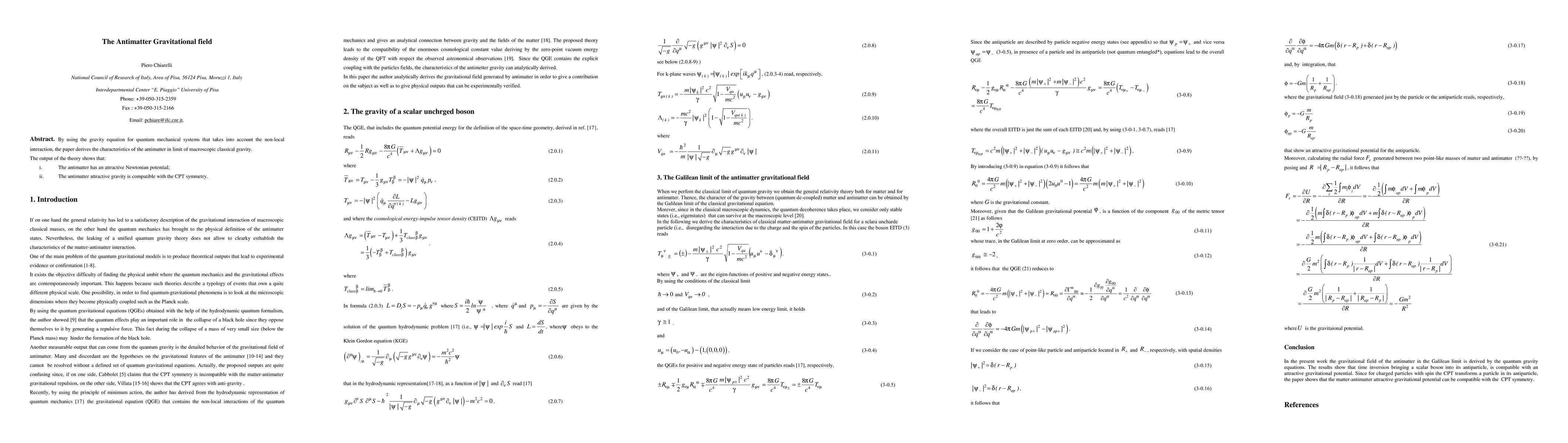 This research presents a novel approach to understanding the nature of antimatter and its interaction with gravity, combining quantum gravity equations with classical field theory.