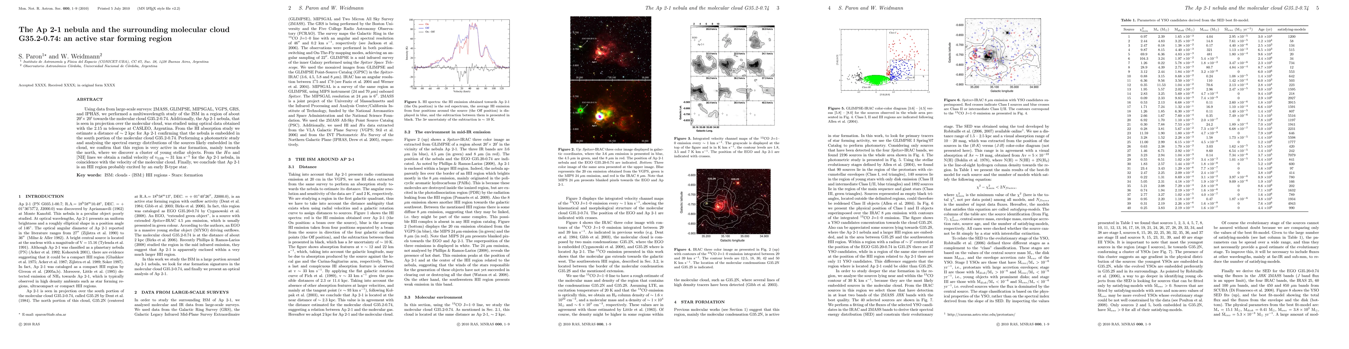 Using data from large-scale surveys: 2MASS, GLIMPSE, MIPSGAL, VGPS, GRS, and IPHAS, we performed a multiwavelength study of the ISM in a region of about 20' x 20' towards the molecular cloud G35.2-0.74. Additionally, the Ap 2-1 nebula, that is seen in projection over the molecular cloud, was studied using optical data obtained with the 2.15 m telescope at CASLEO, Argentina. From the HI absorption study we estimate a distance of ~2 kpc for Ap 2-1 confirming that the nebula is embedded in the south portion of the molecular cloud G35.2-0.74. Performing a photometric study and analysing the spectral energy distributions of the sources likely embedded in the cloud, we confirm that this region is very active in star formation, mainly towards the north, where we discover a cluster of young stellar objects. From the H_alpha and [NII] lines we obtain a radial velocity of v_LSR ~ 31 km/s for the Ap 2-1 nebula, in coincidence with the velocity of the molecular cloud. Finally, we conclude that Ap 2-1 is an HII region probably excited by an early B-type star.