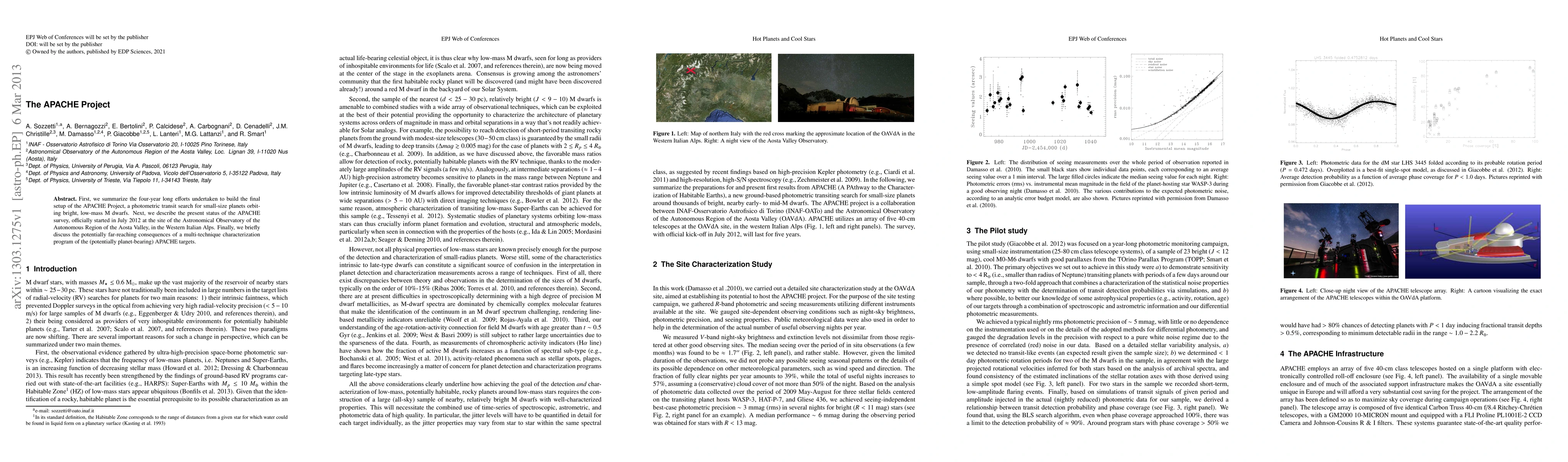 First, we summarize the four-year long efforts undertaken to build the final setup of the APACHE Project, a photometric transit search for small-size planets orbiting bright, low-mass M dwarfs. Next, we describe the present status of the APACHE survey, officially started in July 2012 at the site of the Astronomical Observatory of the Autonomous Region of the Aosta Valley, in the Western Italian Alps. Finally, we briefly discuss the potentially far-reaching consequences of a multi-technique characterization program of the (potentially planet-bearing) APACHE targets.